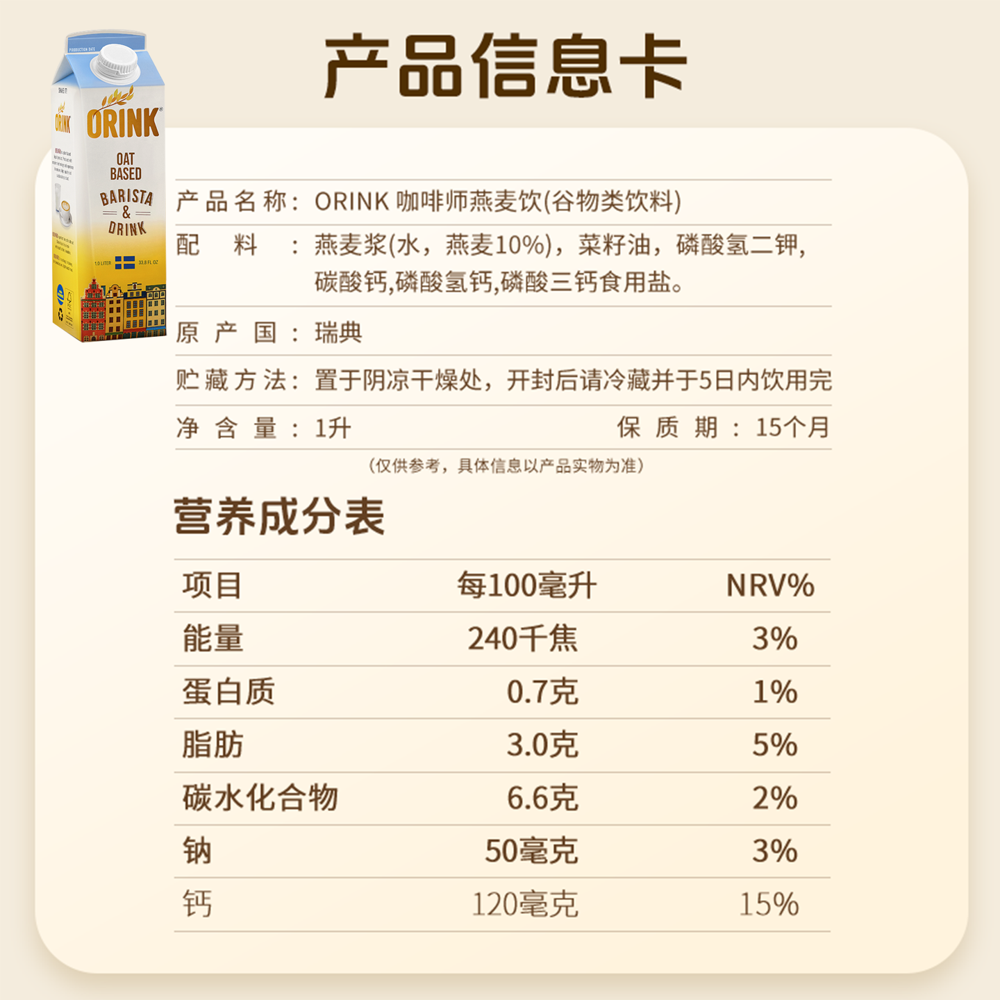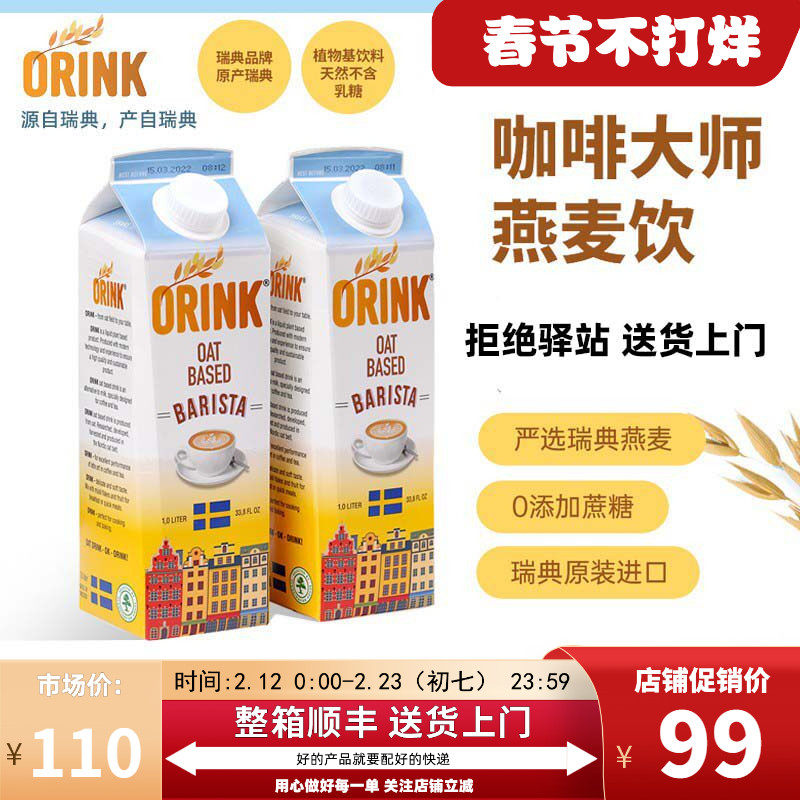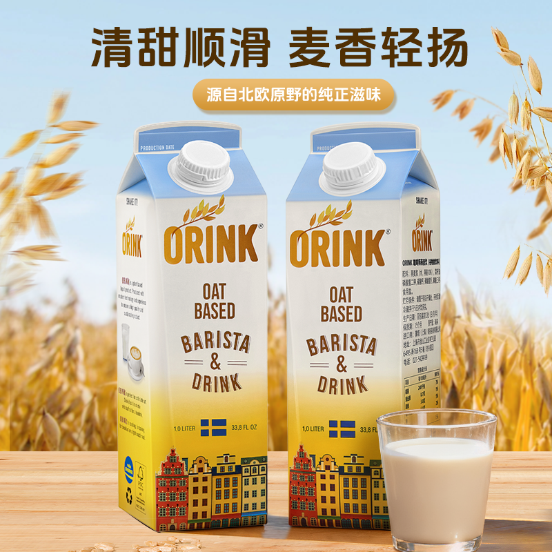 📚 【整箱6盒】ORINK奥力刻瑞典进口咖啡大师燕麦奶0乳糖植物奶1L