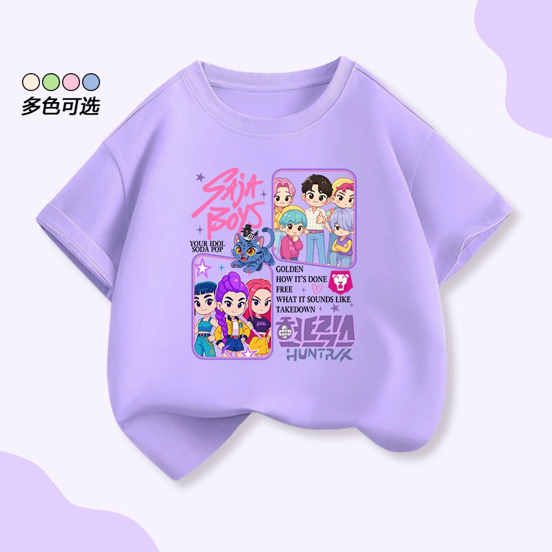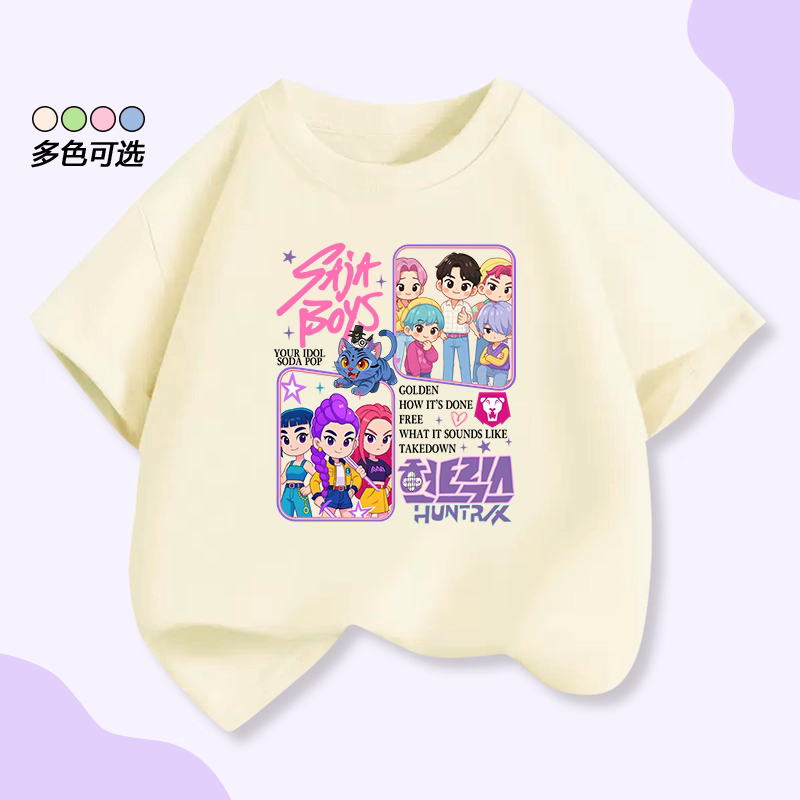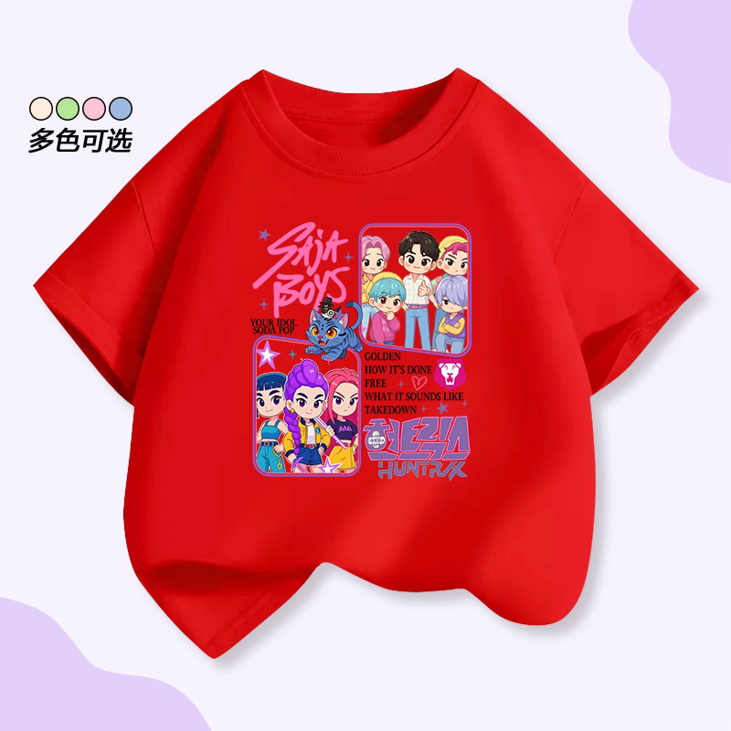 📚 新款猎魔女团KPopDemonHunters短袖T恤SAJA BOYS猎魔男团儿童上衣