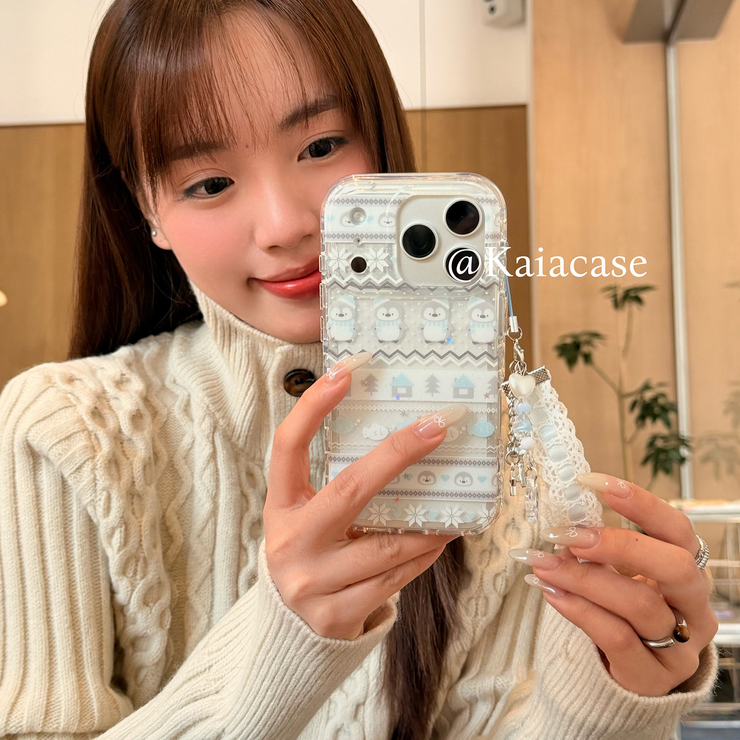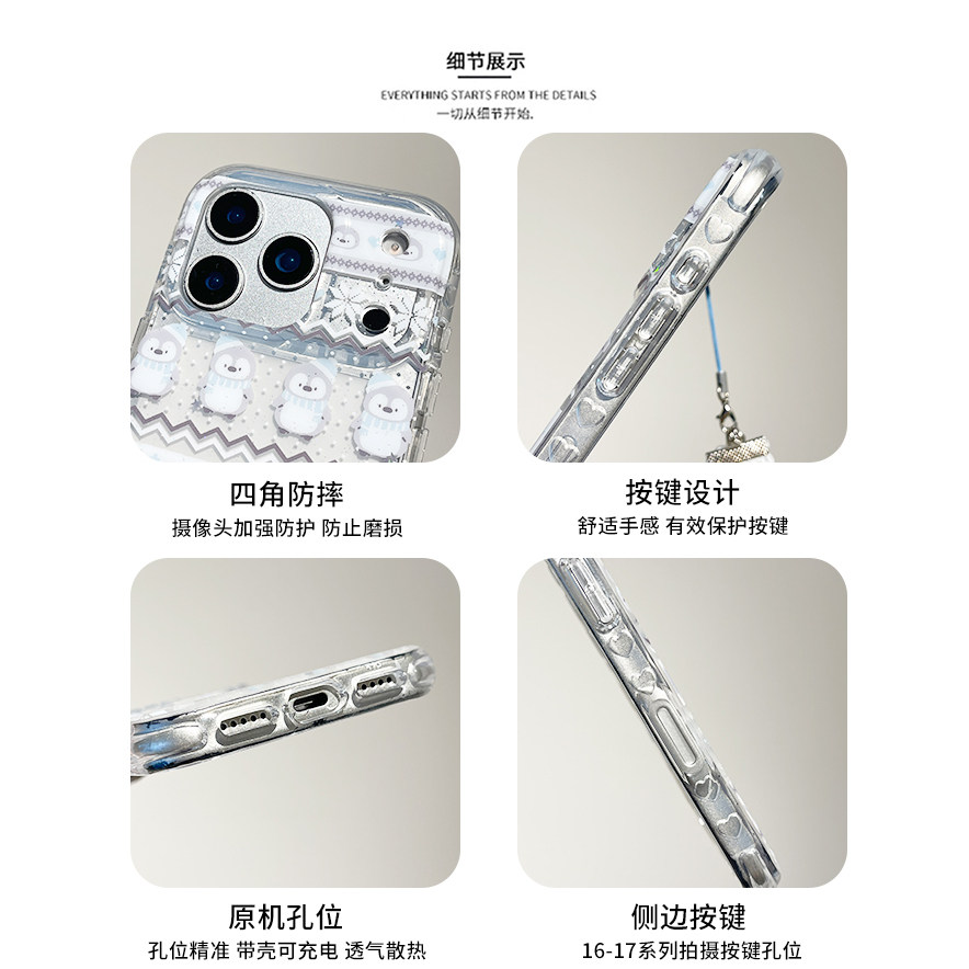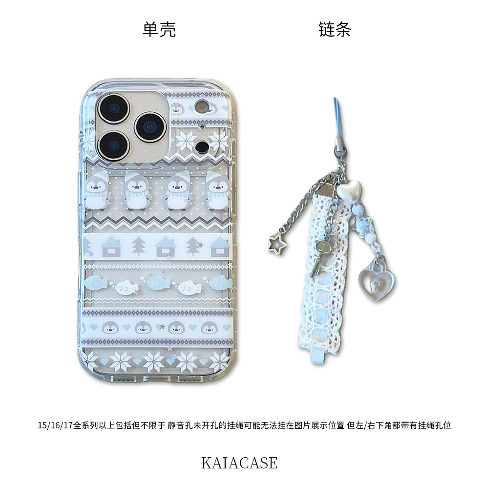 📚 kaia 秋冬款费尔岛卡通企鹅适用苹果17promax手机壳iphone16pro新款15女14pro带链条15pro透明双层防摔手机套