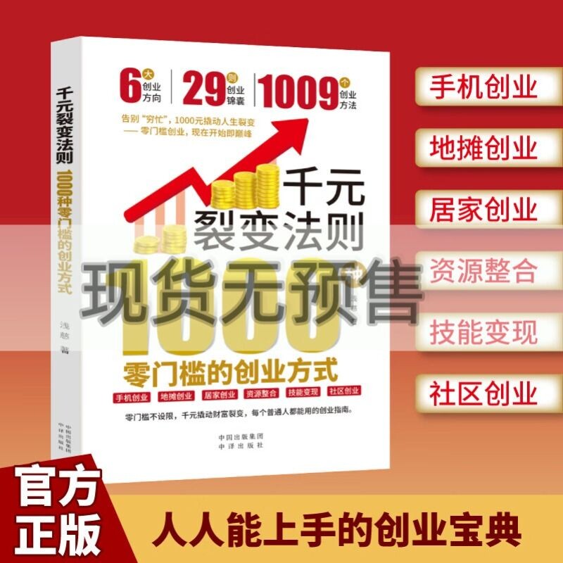 💡首先,从内容结构上看,这本书详尽介绍了各种零门槛的创业方式,涵盖了从线上到线下、从实体到虚拟的各种创业路径。无论你是想在家创业、还是想寻找新的商机,这本书都能为你提供宝贵的参考和指导。