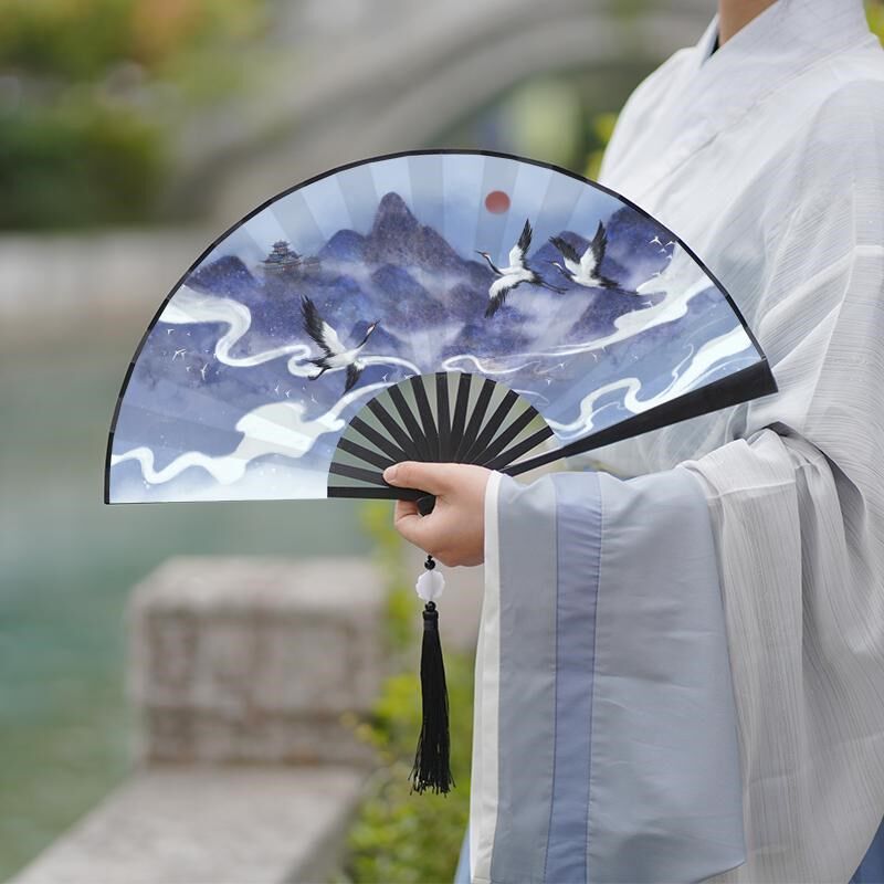 📚 上春山八寸文创折扇中国风晨袍汉服道具扇复古风舞蹈扇子随身夏季