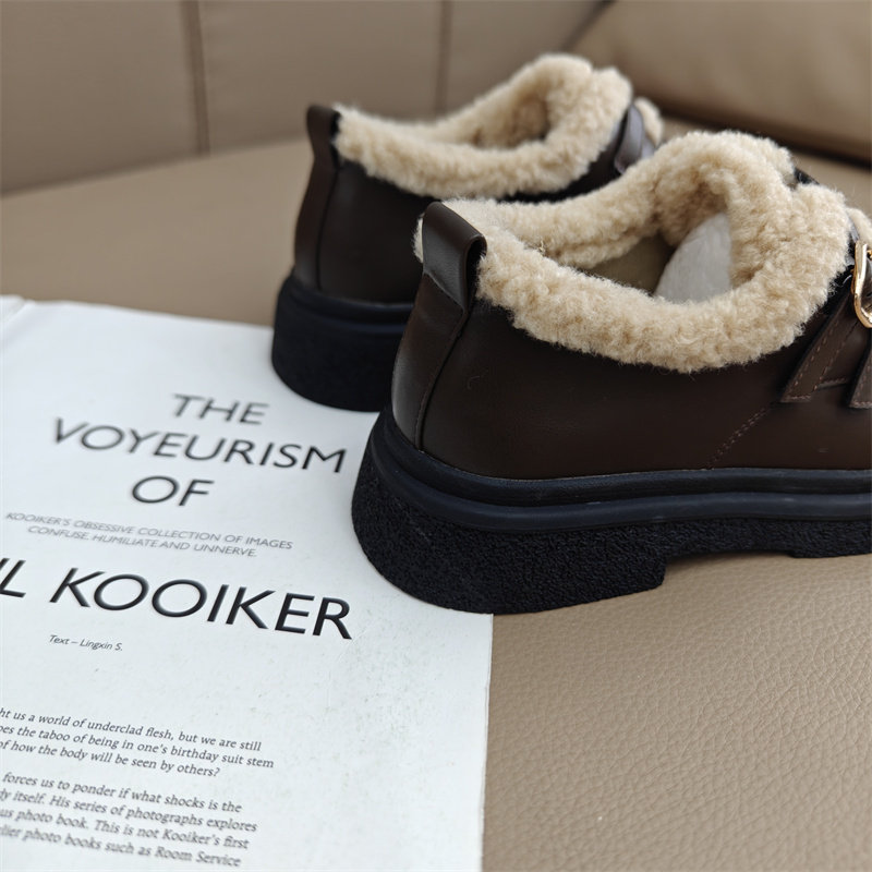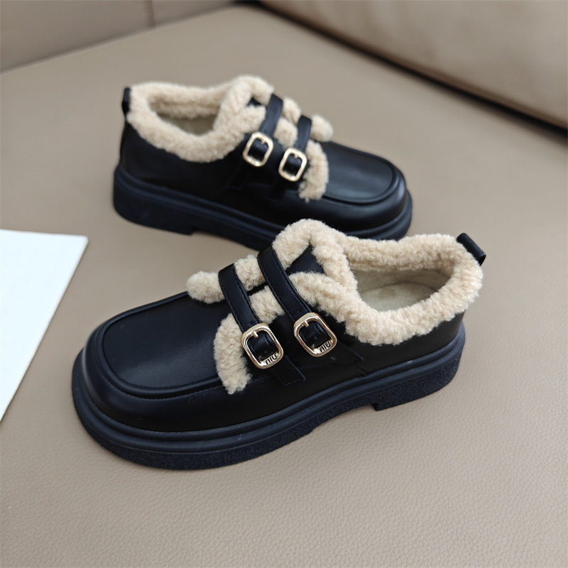 📚 真皮乐福鞋加绒棉鞋制服鞋2025年冬季时尚英伦风雪地靴毛毛羊羔鞋