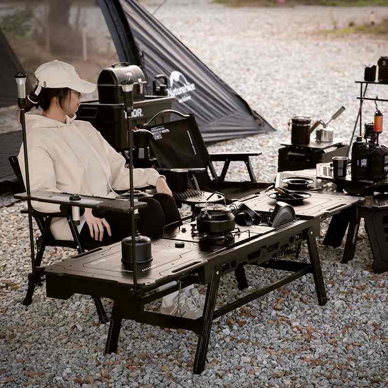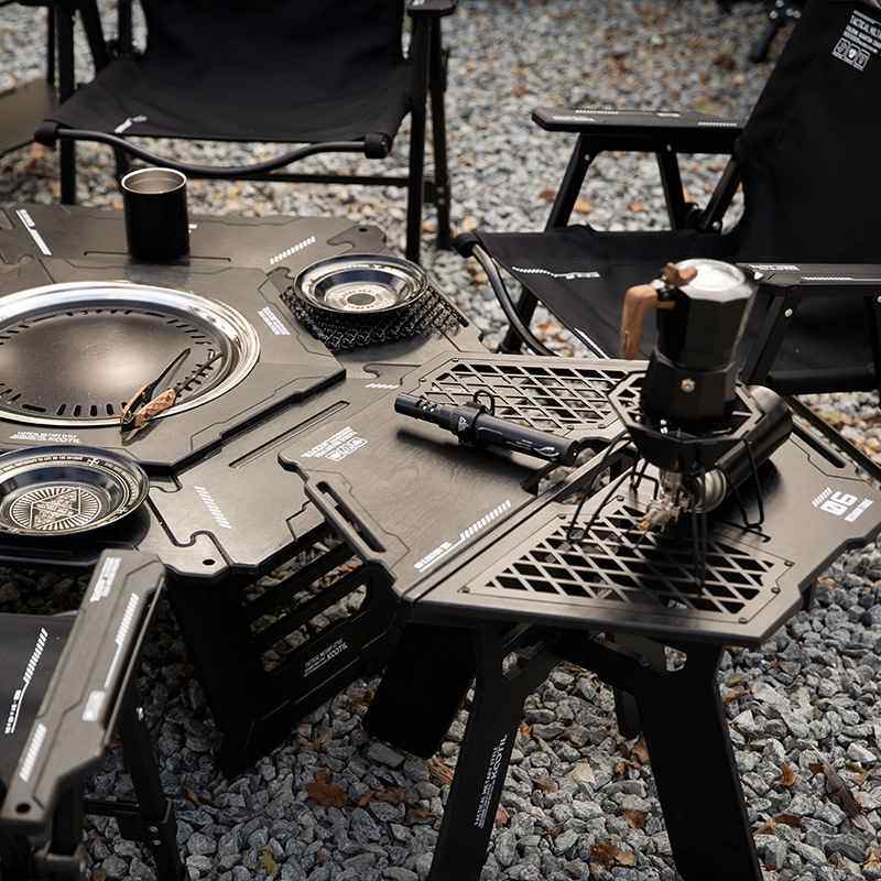 📚 户外围炉煮茶桌子露营多功能滑六角圆桌烧烤桌野营可拆卸折叠围桌