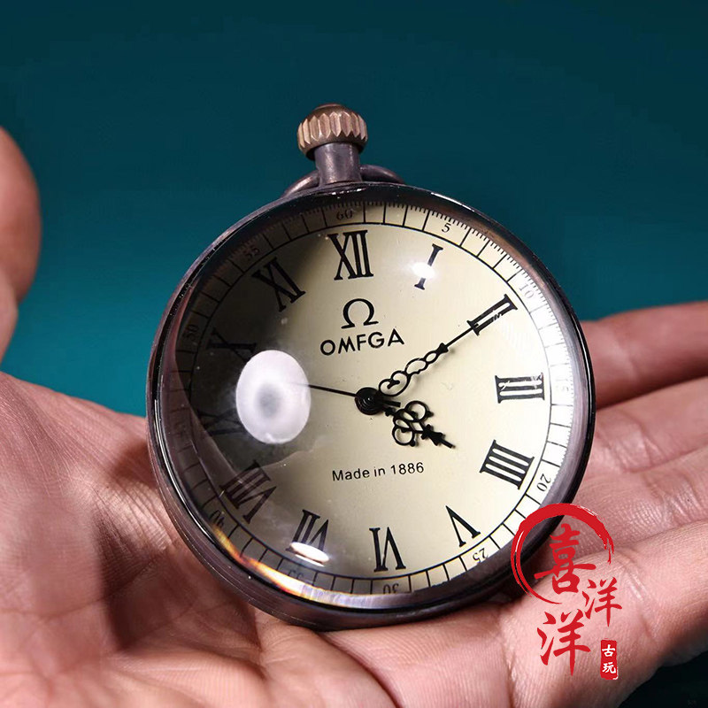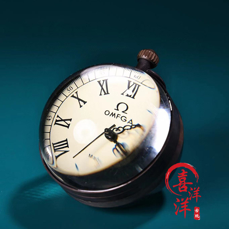 📚 古董文玩欧洲回流手动发条水晶球机械表西洋表桌面摆件复古老物件