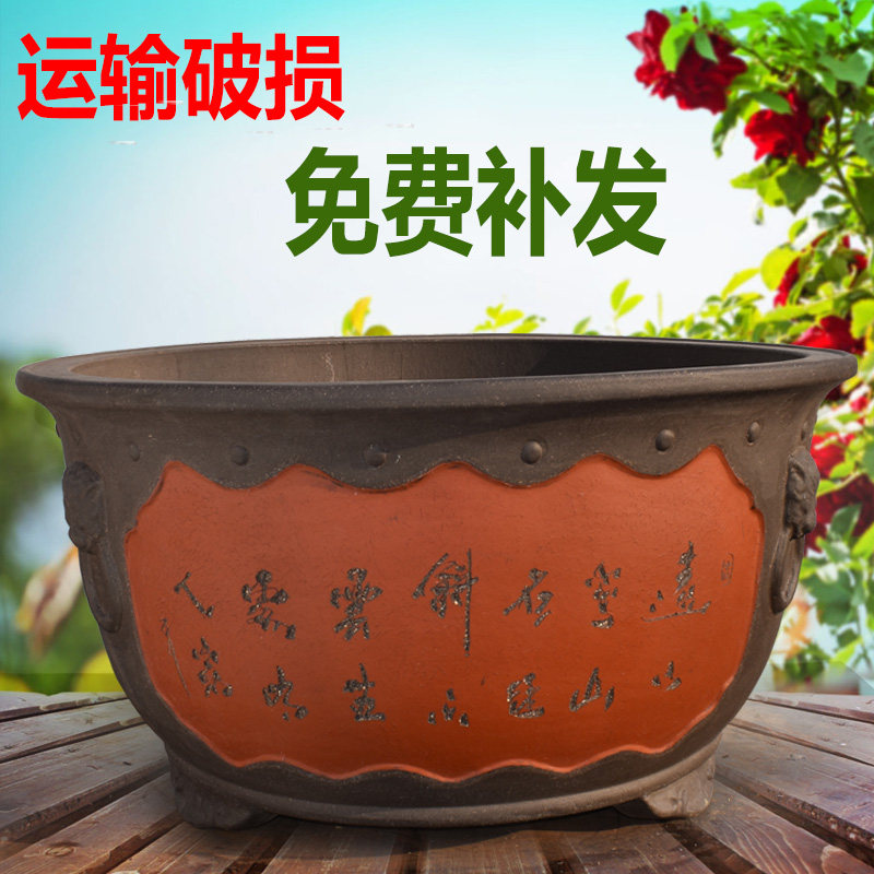 花盆扁圆形特大号种树紫砂