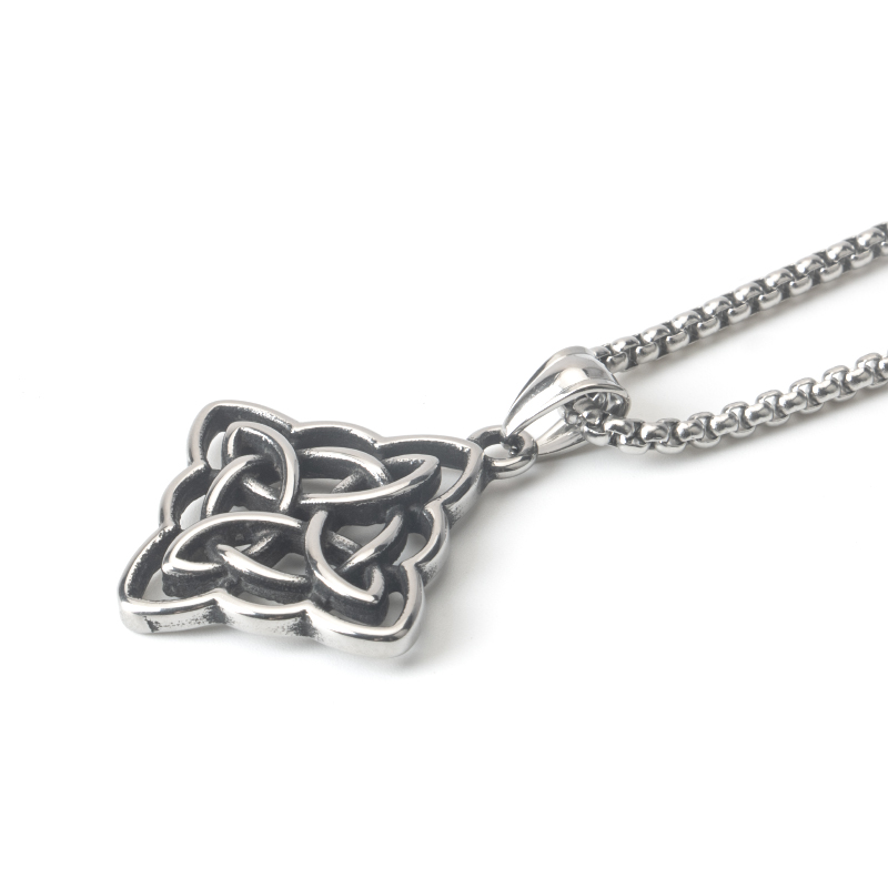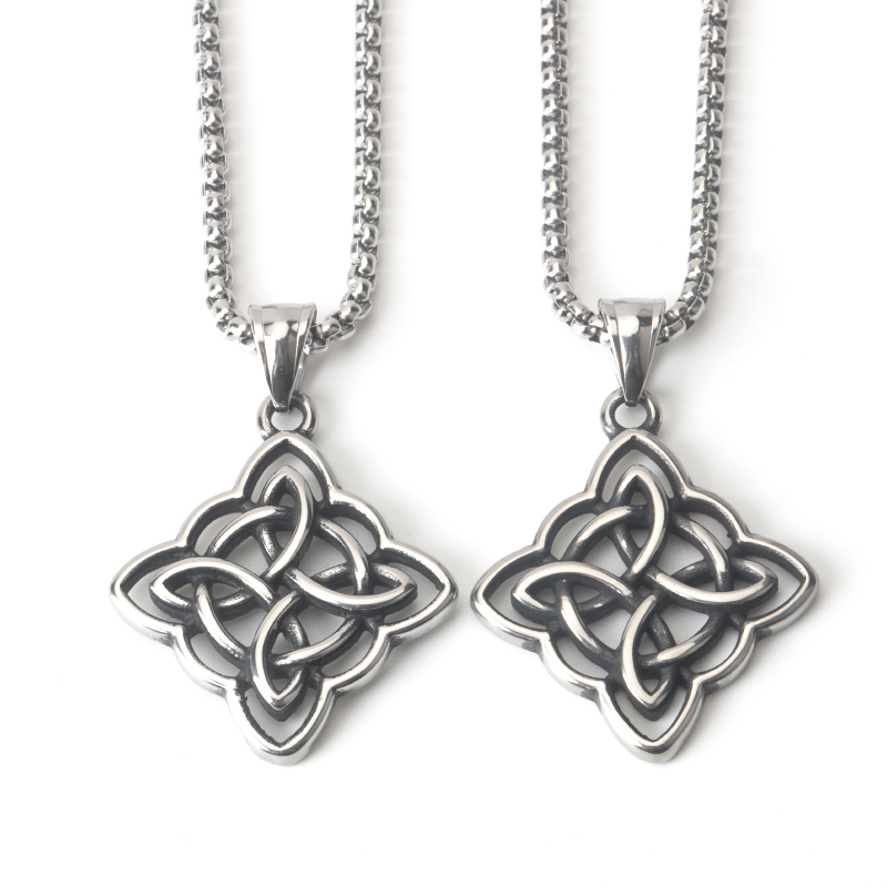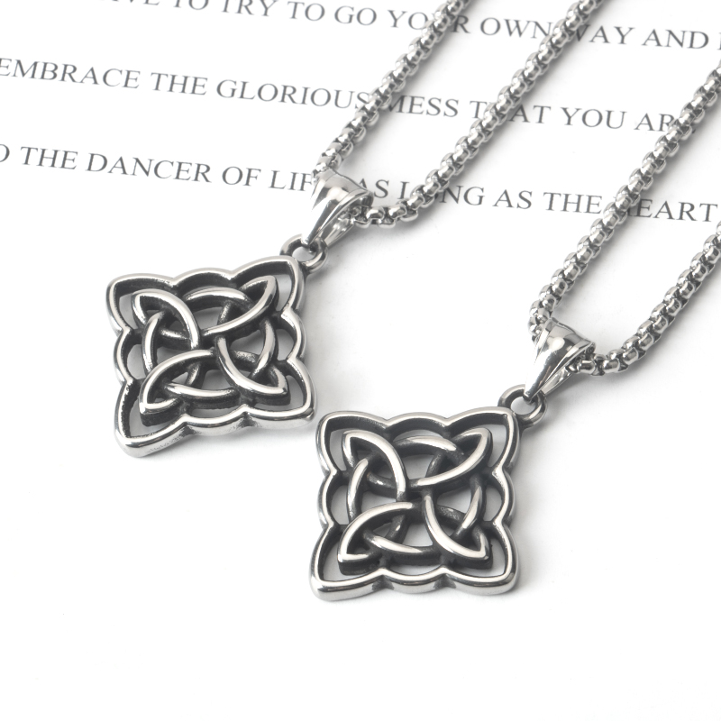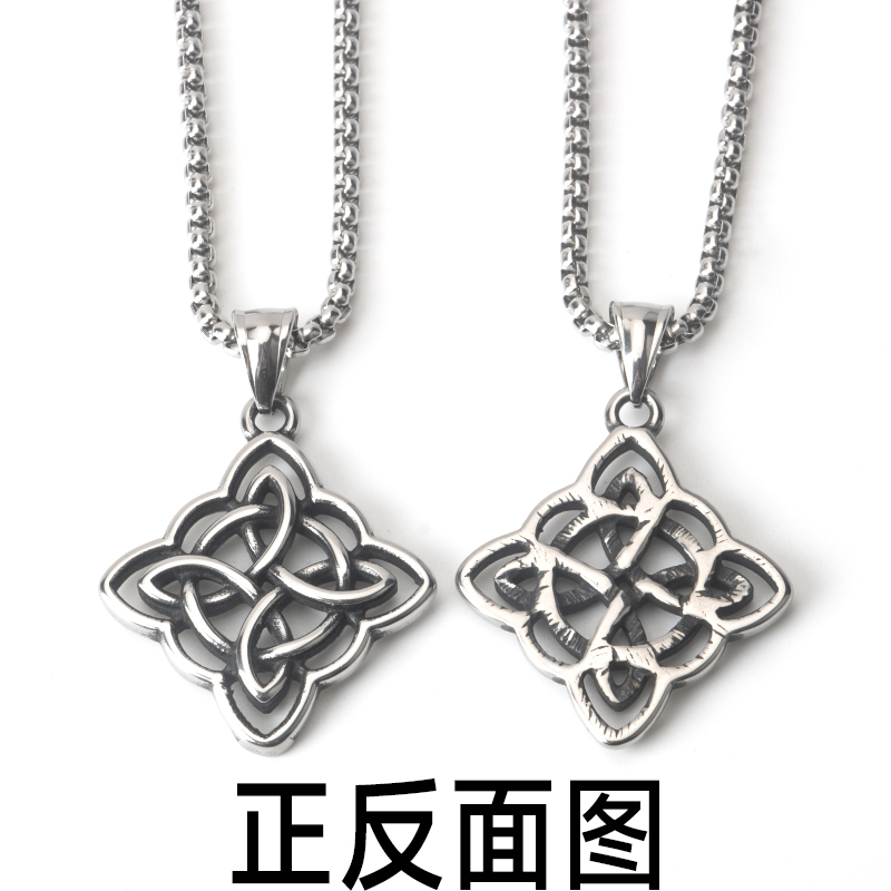 📚 不锈钢简约复古做旧百搭凯尔特结吊坠钛钢男女街头潮流长款项链