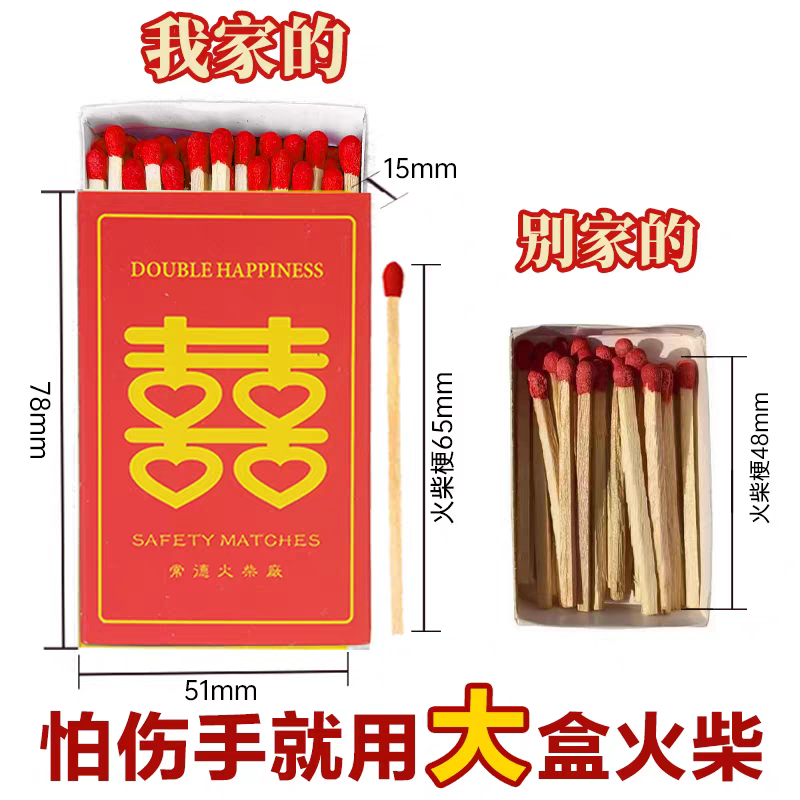 📚 大盒塑封双喜火柴结婚洋火老式喜事婚礼火柴点烟家用炉灶优质火柴