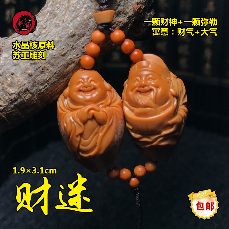 📚 橄榄核核雕挂件原皮财迷财神爷弥勒大籽苏精修男女文玩手把件包邮