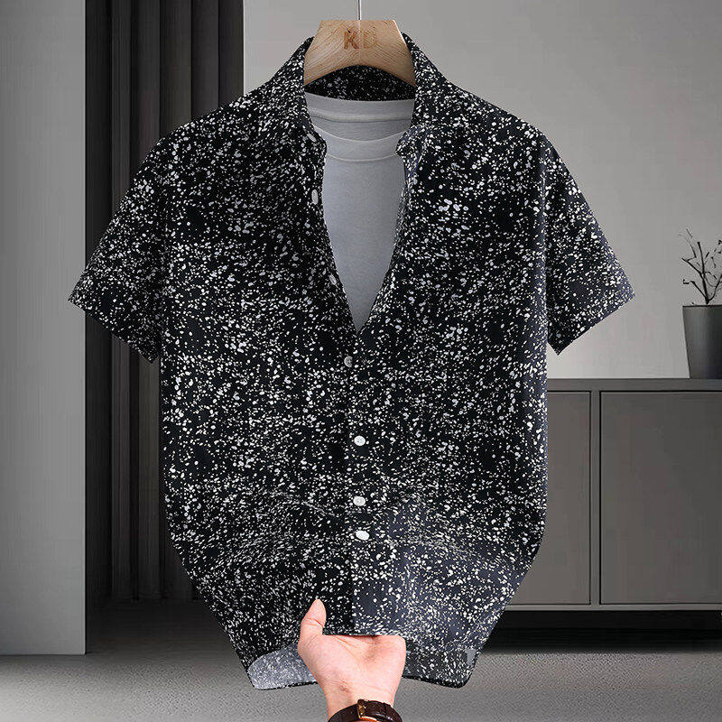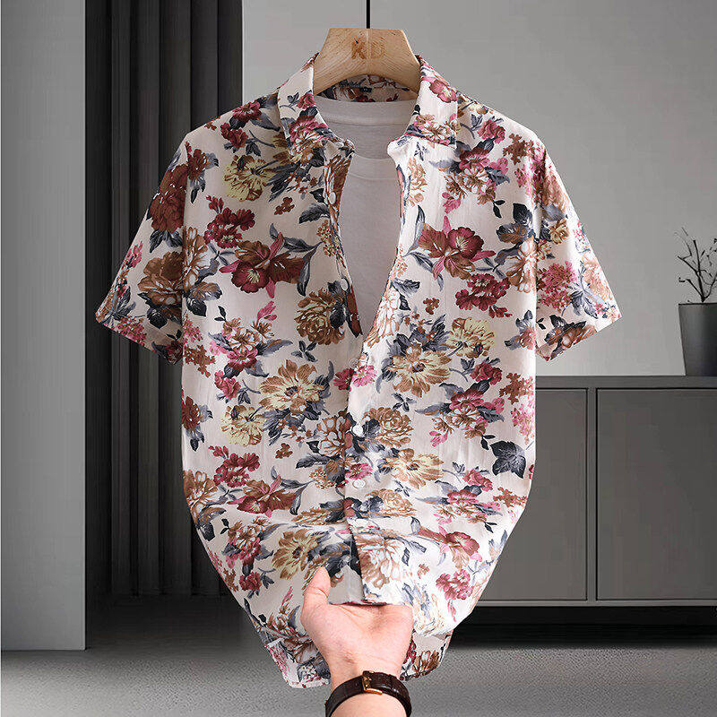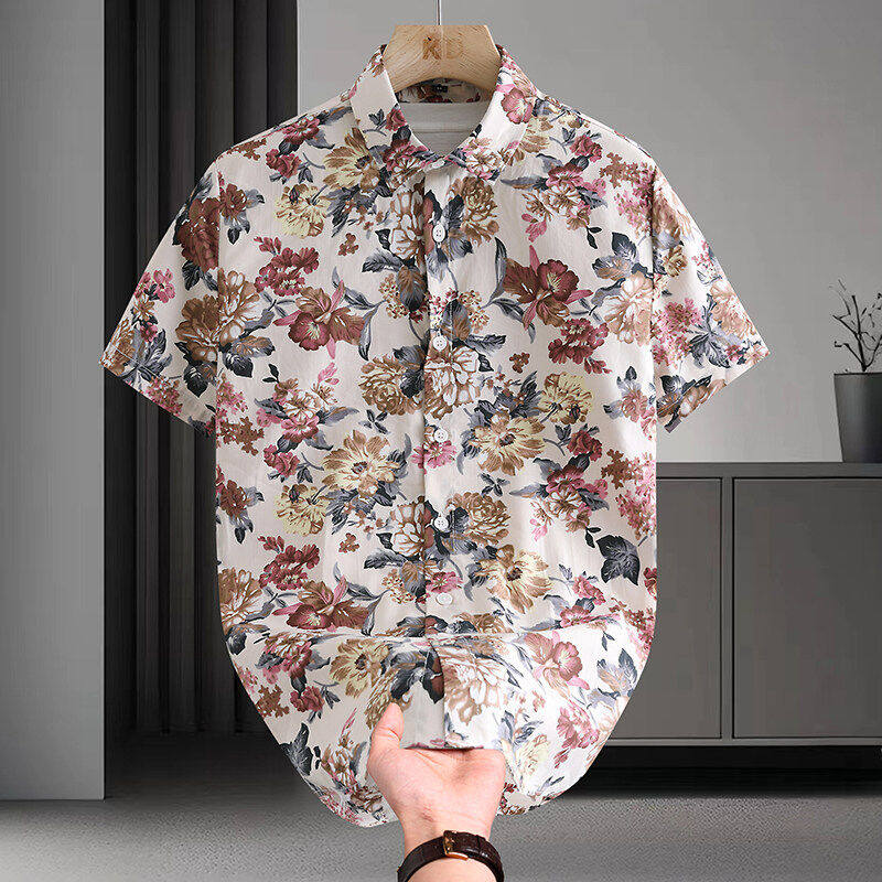 📚 纯棉小碎花个性短袖衬衫男痞帅花纹沙滩休闲薄夏季衬衣潮流发型师