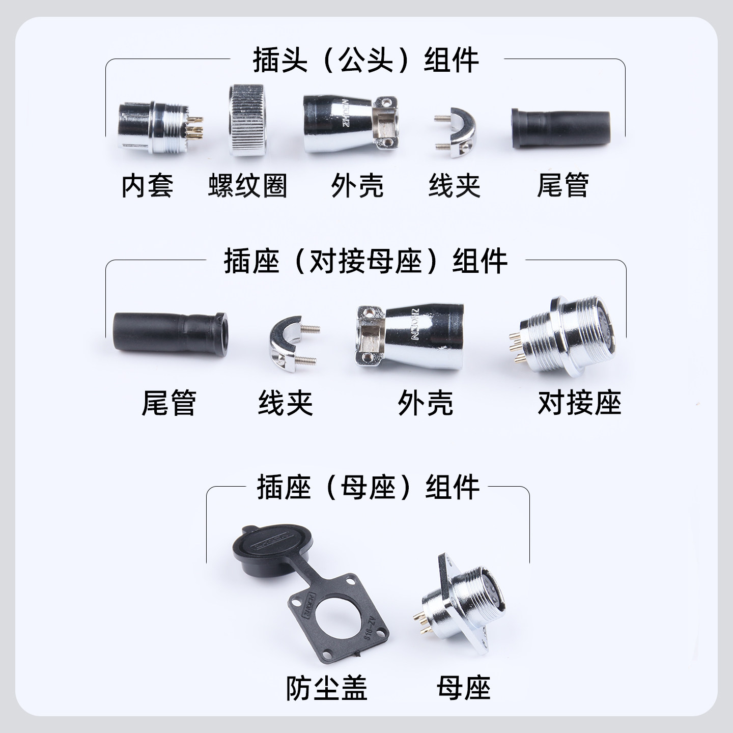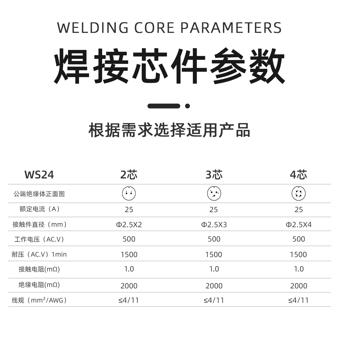 📚 航空插头插座公头母座对接母座电连接器WS24-2/3/4芯带线1M20CM