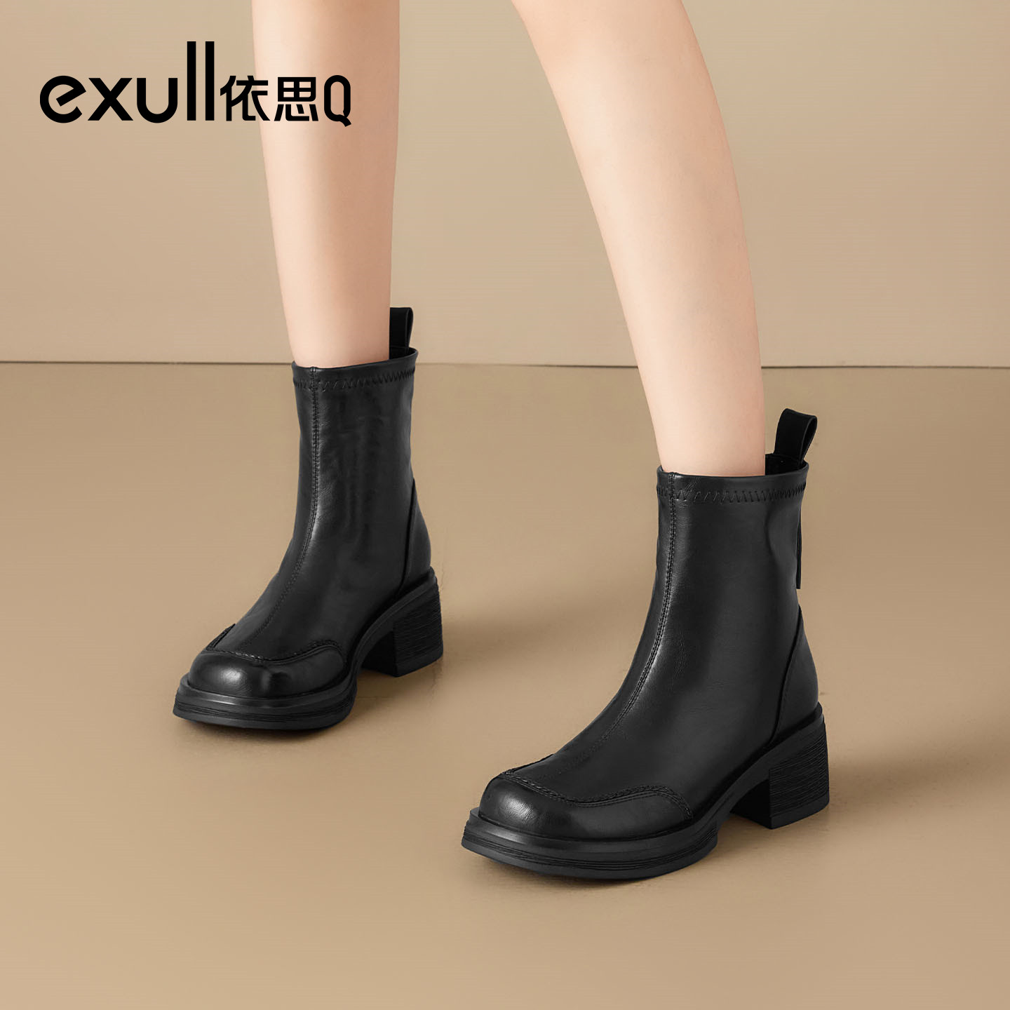 📚 exull/依思Q2025秋季新款短靴女厚底增高英伦风马丁靴粗跟瘦瘦靴
