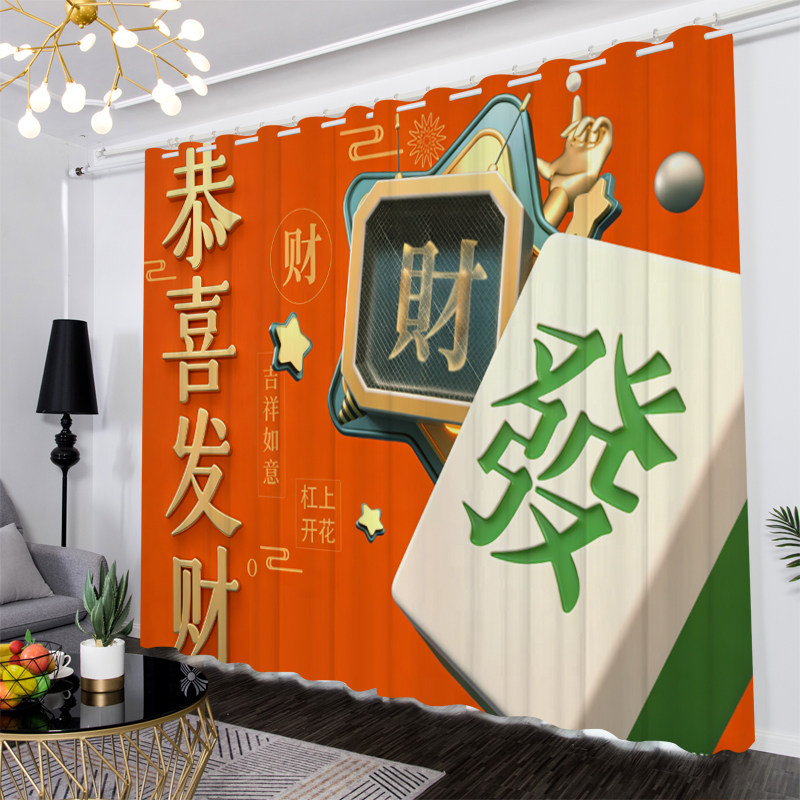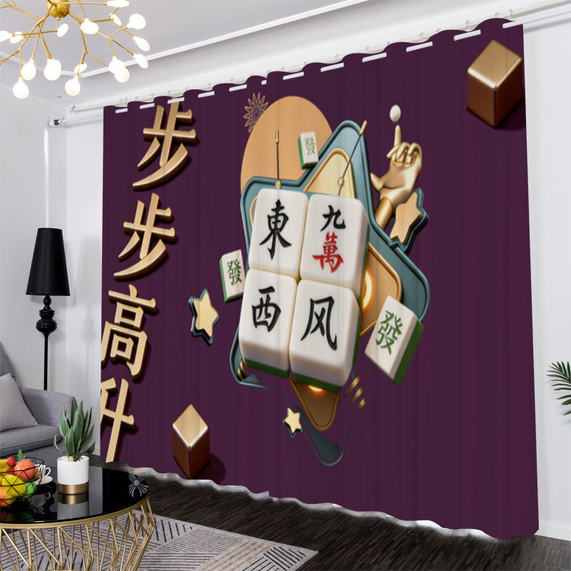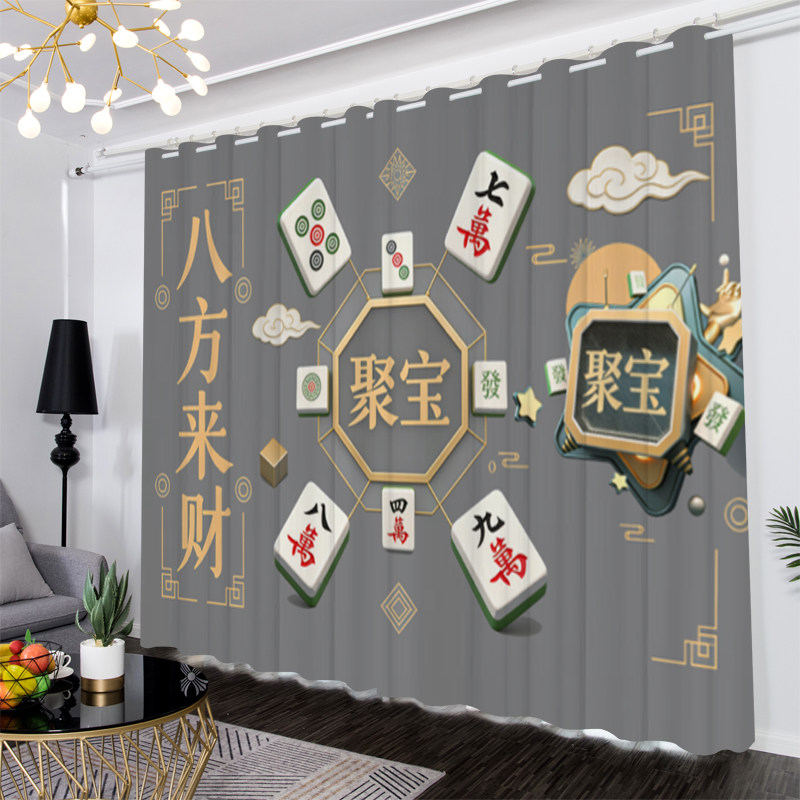 📚 简约现代个性麻将遮光窗帘定制卧室客厅棋牌室开运风水隔断背景布