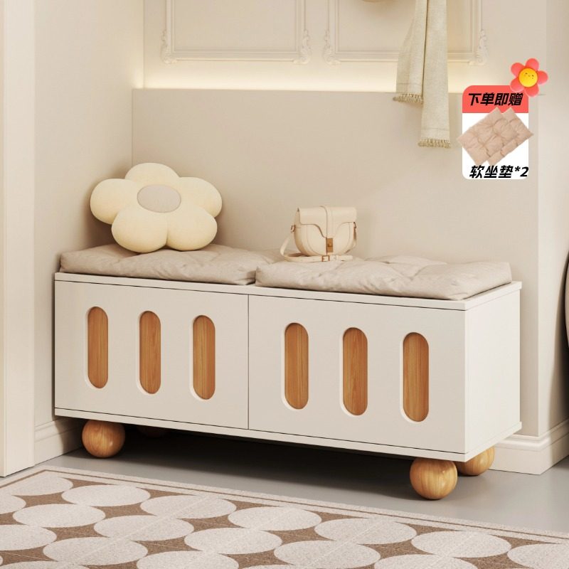 📚 奶油风换鞋凳门口家用小户型玄关长条进门凳子入户鞋柜一体可坐凳
