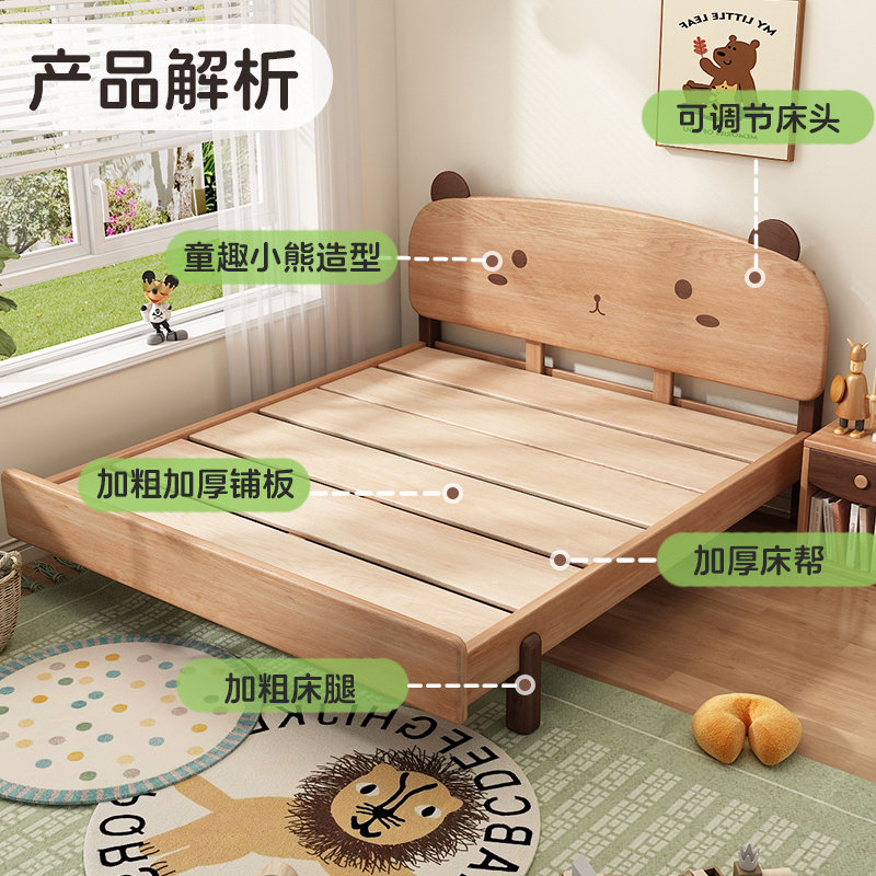 📚 1米5x2米的床单人床儿童床卧室小户型1米2床家用135cm宽的实木床