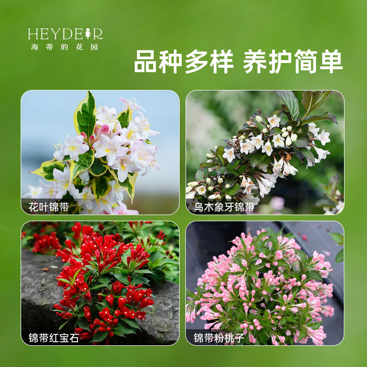 📚 海蒂的花园花叶锦带乌木象牙红宝石灌木耐寒庭院造景植物花卉盆栽