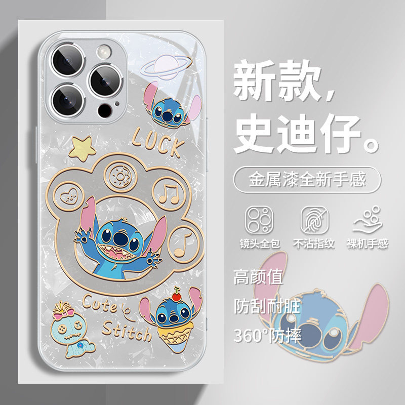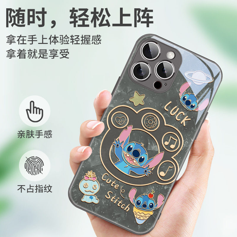 📚 史迪仔苹果15promax手机壳17高级感小众iphone16plus新款14玻璃13卡通可爱11p史迪奇12pro女款xs防摔xr全包