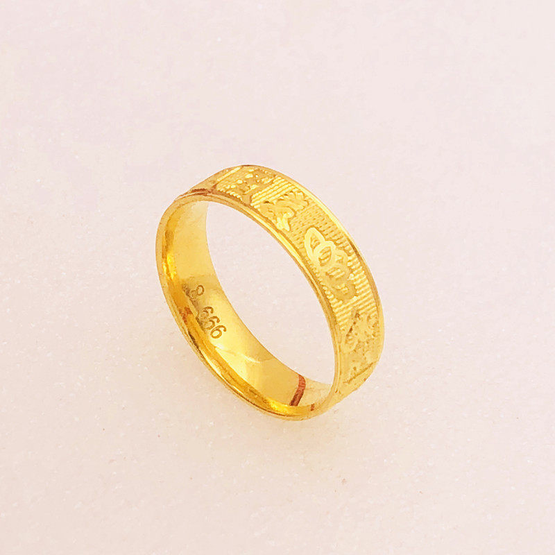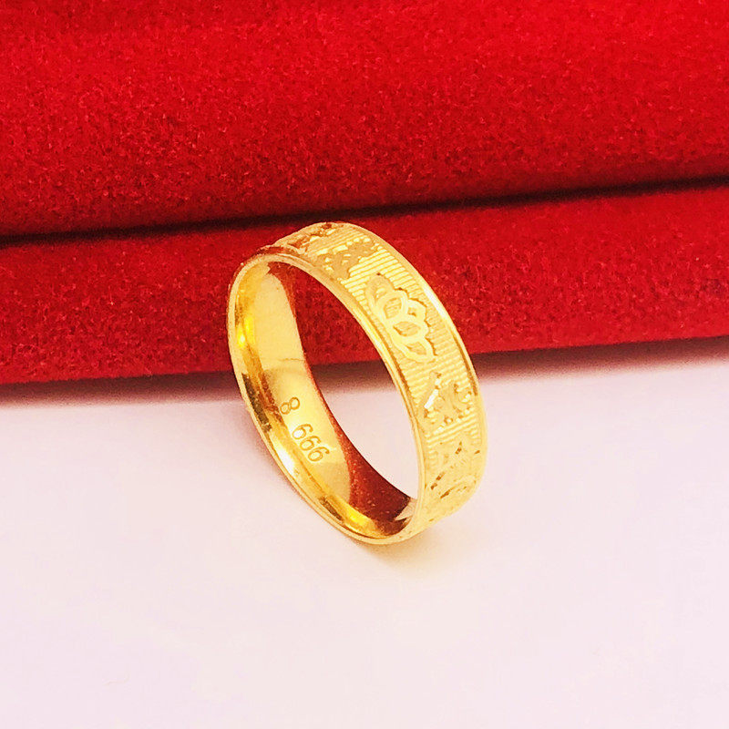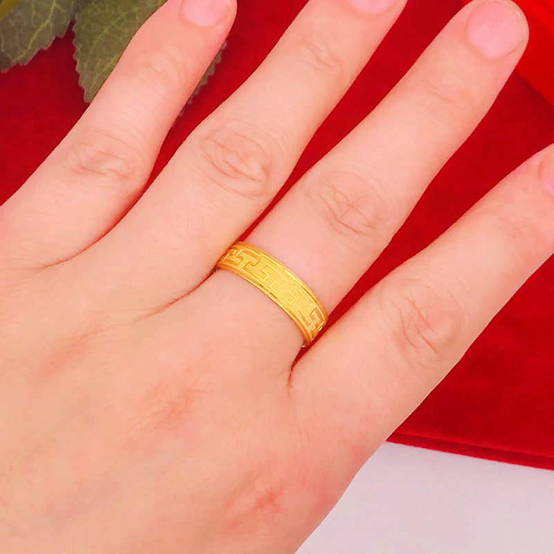 📚 时尚沙金戒指情侣款铜镀金假黄金长城纹六字真言闭口指环久不掉色