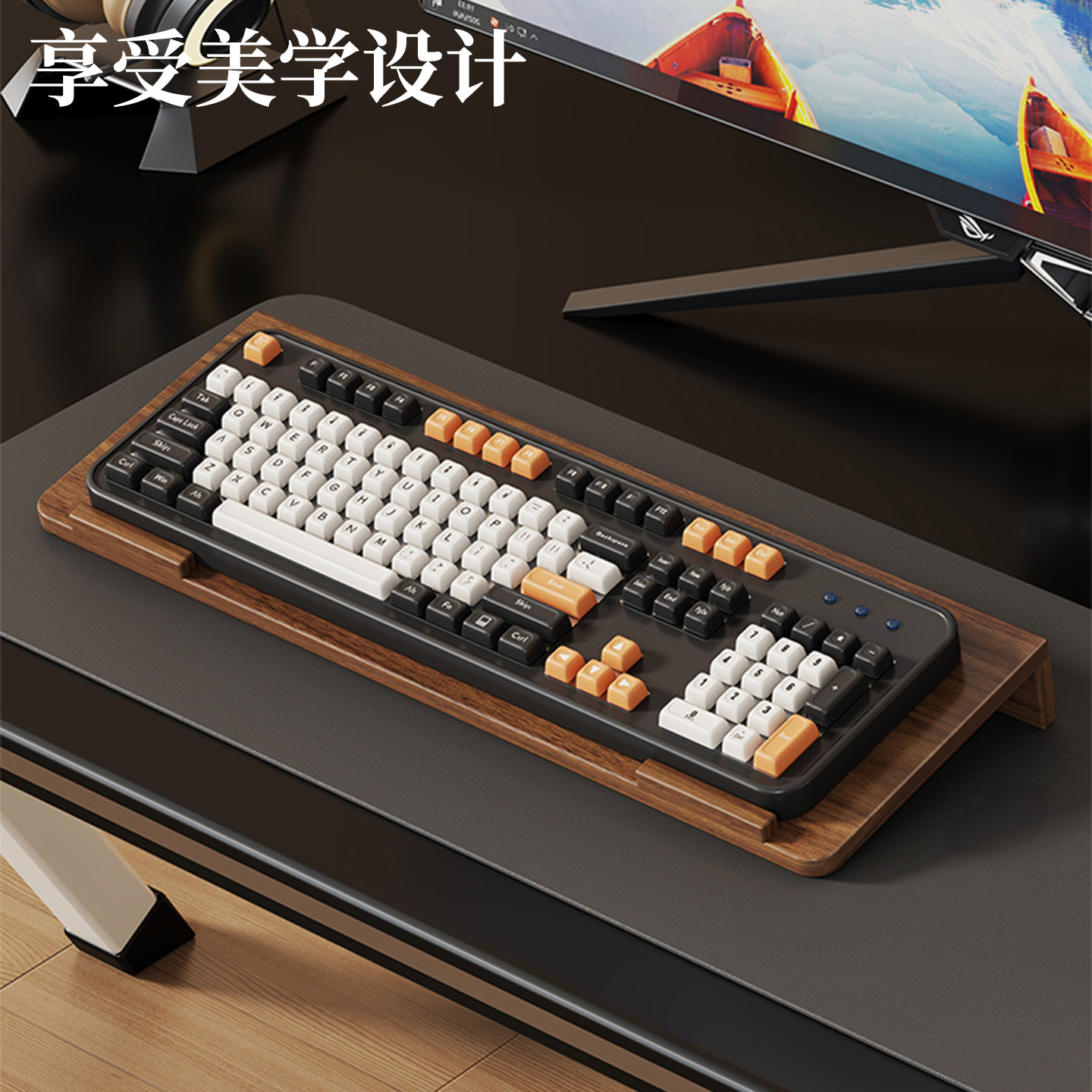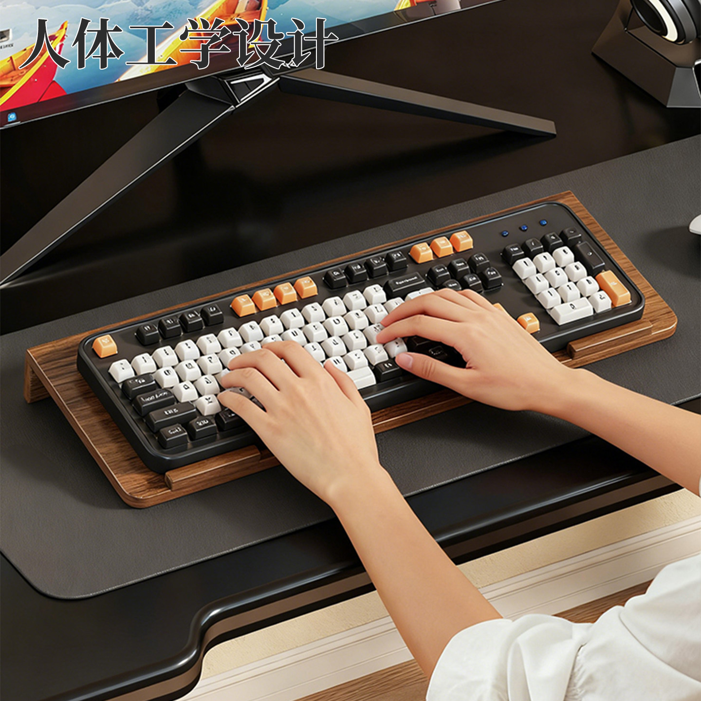 📚 实木键盘托架增高支架木质悬浮办公桌台式电脑倾斜托盘桌面机械键盘垫电脑配件抬高底座键盘储物架电脑置物架