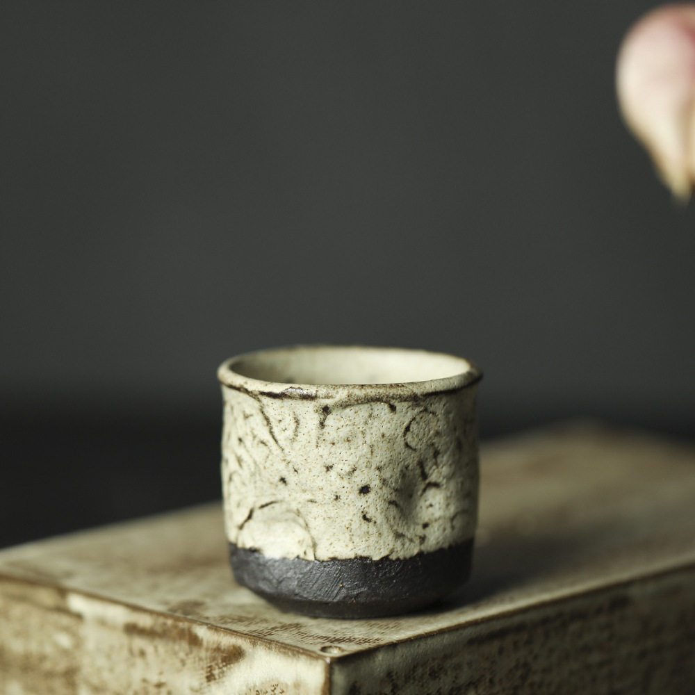 📚 景德镇纯手工复古陶瓷茶具朴拙主人杯侘寂品茗杯粗陶茶杯粉引单杯
