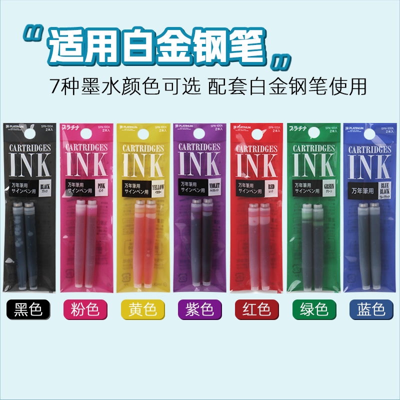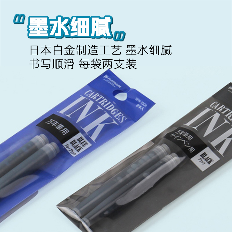 📚 日本PLATINUM白金钢笔墨囊可替换小流星笔尖小学生用SPN-100A黑色蓝色蓝黑一次性彩色墨水胆通用PPQ200吸墨器