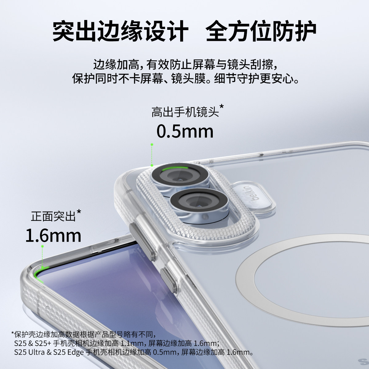 📚 Belkin贝尔金适用三星S25 Edge透明磁吸手机壳GalaxyS25Ultra/S25u超薄壳防摔防刮支持Qi2磁吸无线充电保护套