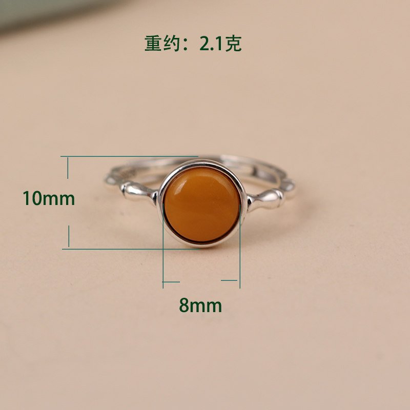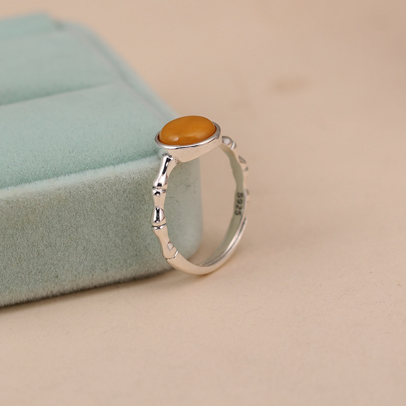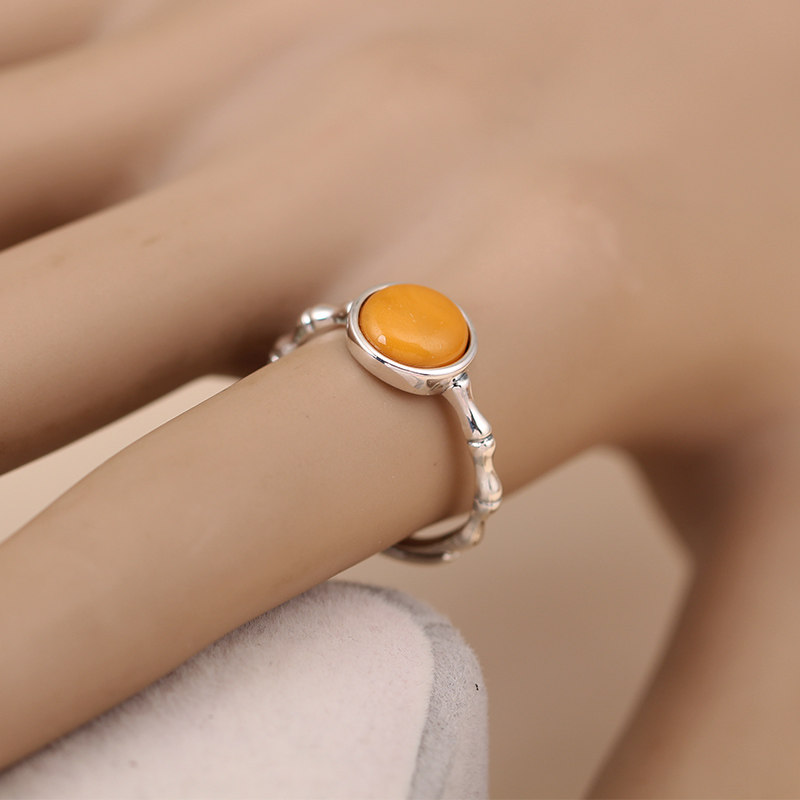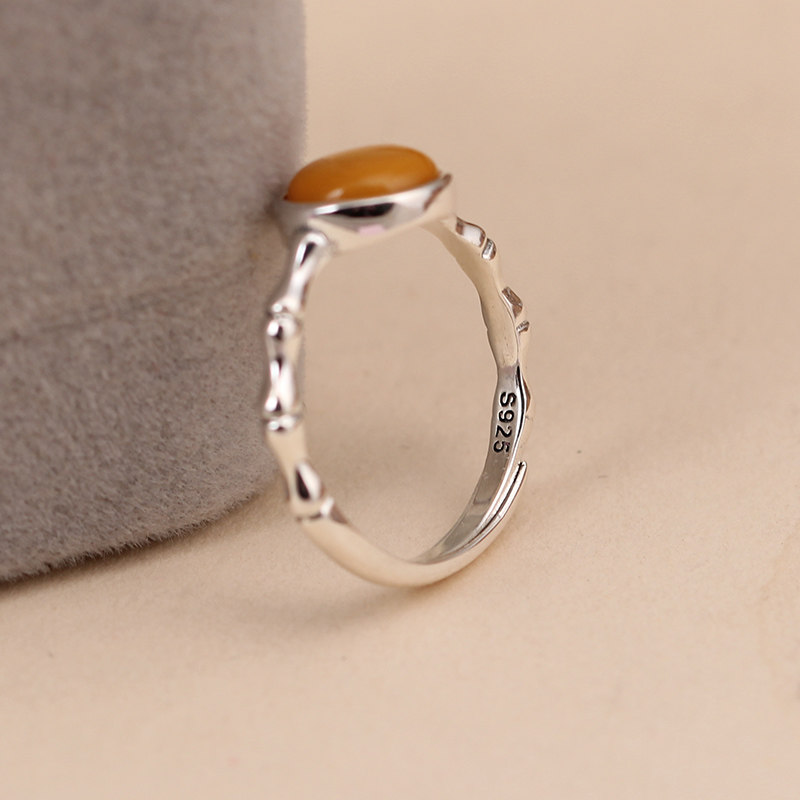 📚 天然蜜蜡戒指S925纯银竹节开口指环节节高升银饰食指戒时尚戒子