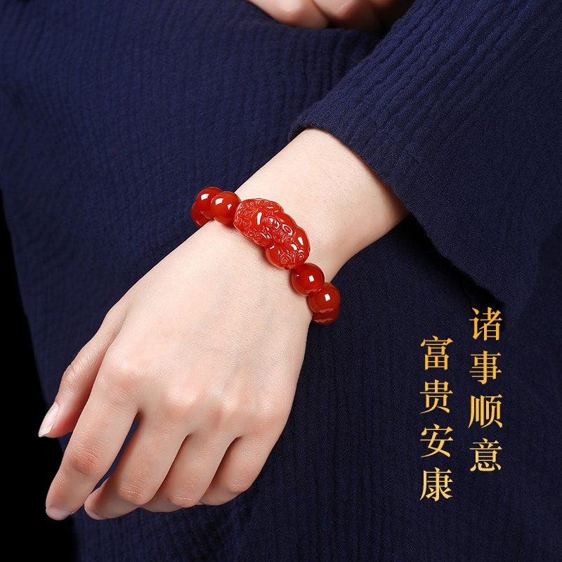 📚 真品红玛瑙手串招财貔貅玉石手链女官方旗舰店本命年男款情侣饰品