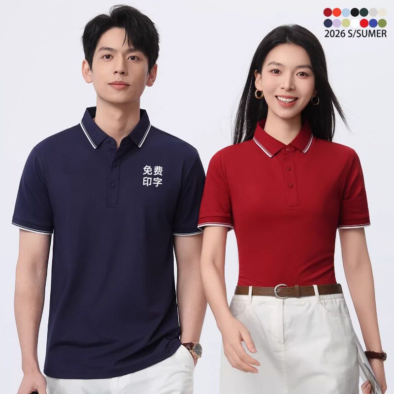 📚 翻领短袖POLO衫男士夏季工作服T恤团体服广告衫工装定制印字logo