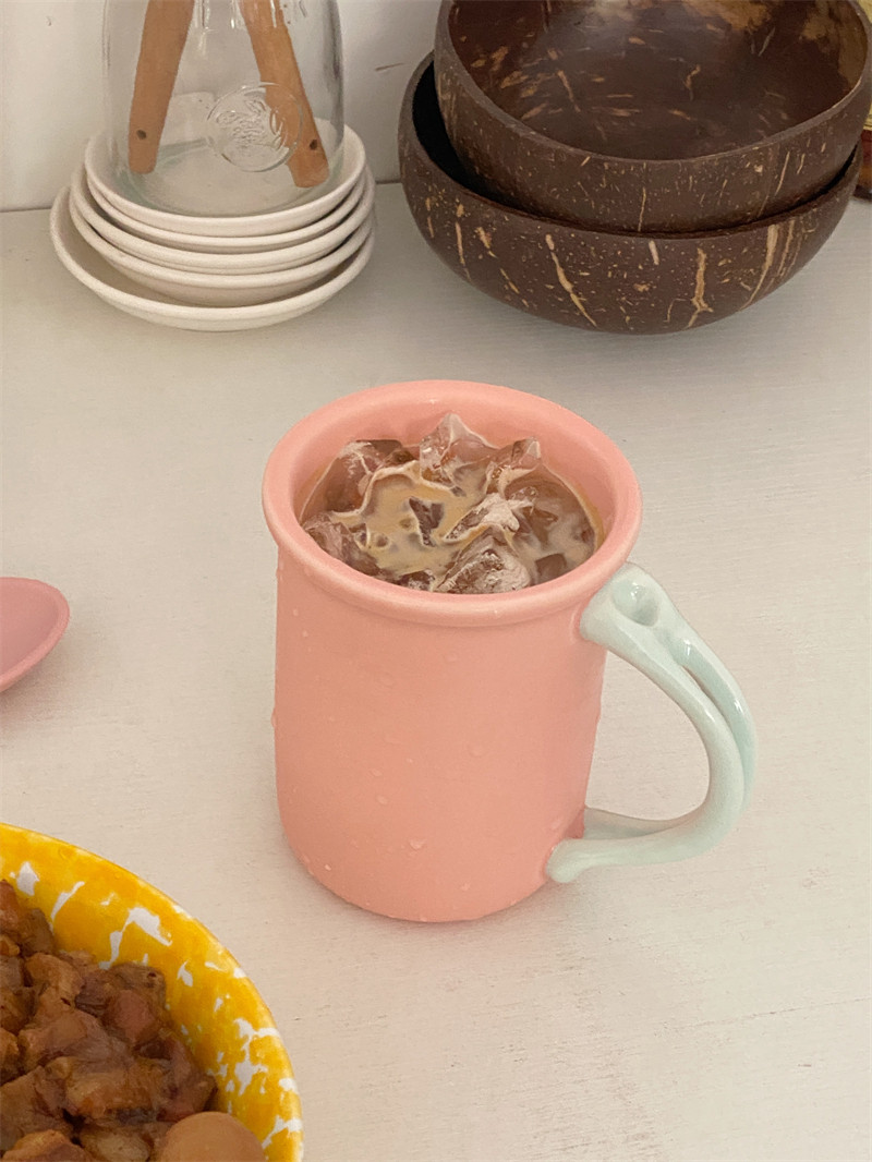 📚 阿宝-原创《桃桃杯》ins可爱粉色少女心撞色陶瓷马克杯耐热咖啡杯