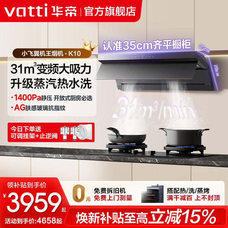 📚 [小飞翼机王]华帝油烟机K10顶侧双吸抽油烟机家用厨房官方旗舰店