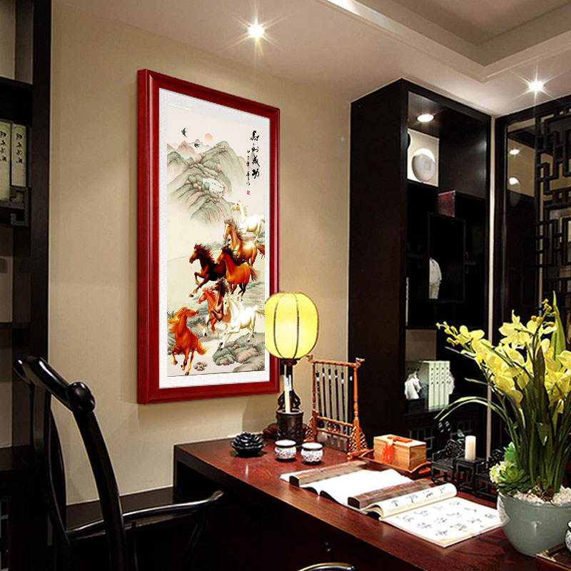 📚 八骏图入户玄关装饰画竖版马到成功国画万马奔腾画客厅八马图挂画