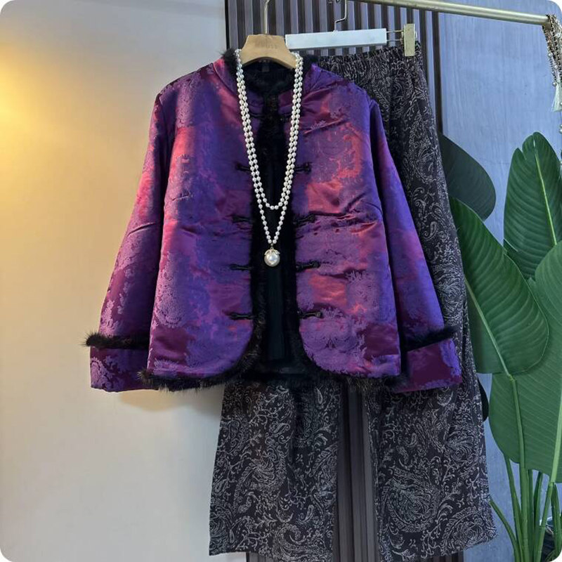 #新品首发 #新中式风 #国潮锦缎 #大码女装 #提花棉外套 #水洗阔腿拖地裤