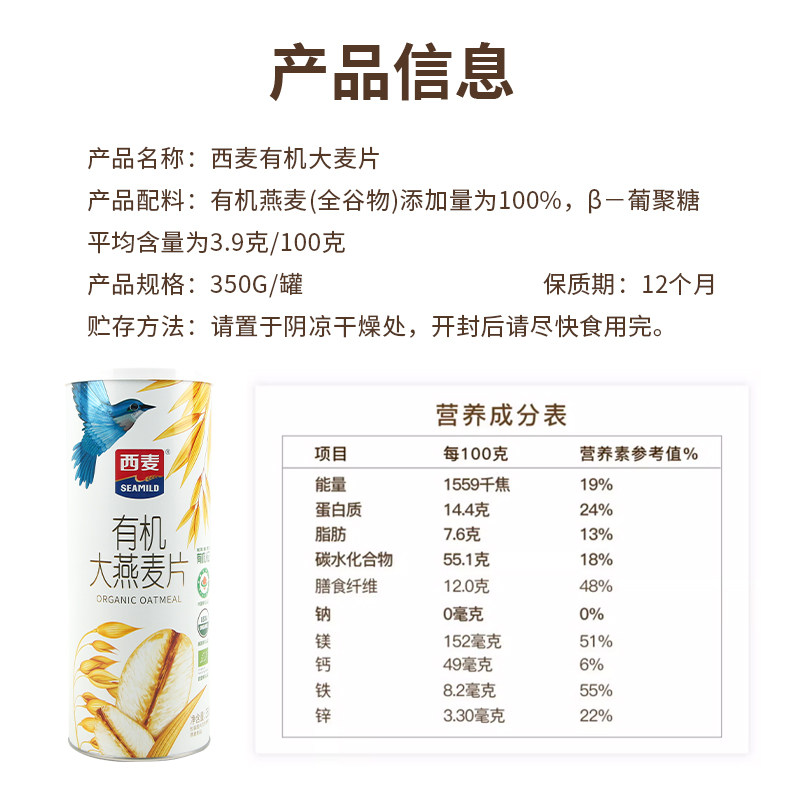 📚 西麦有机大燕麦片营养早餐冲饮谷物即食方便早餐无额外添加蔗糖
