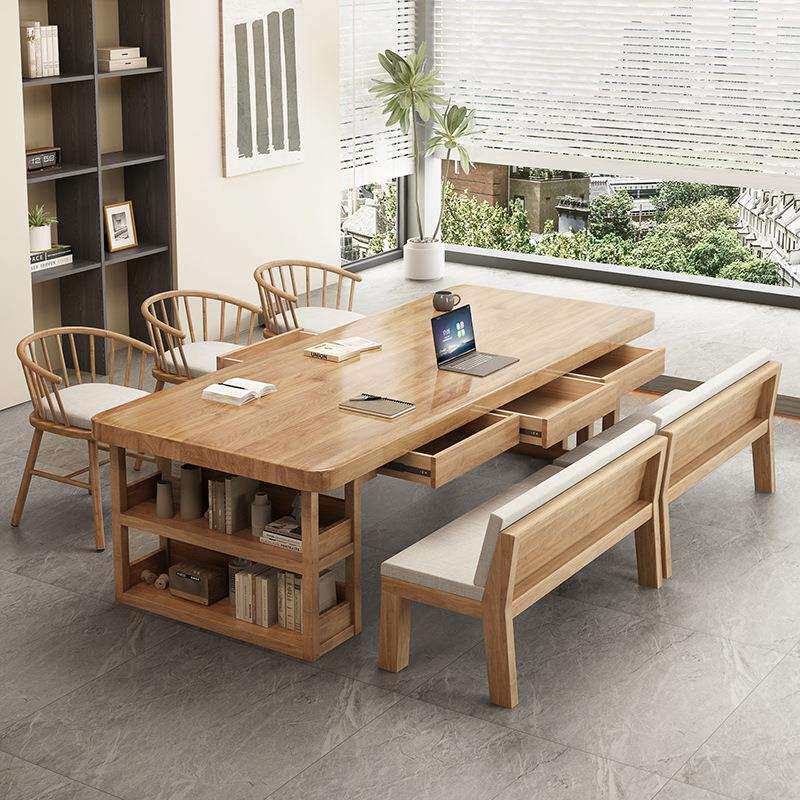 📚 全实木大书桌原木风办公电脑桌工作台阅读学习桌写字桌长方形桌子