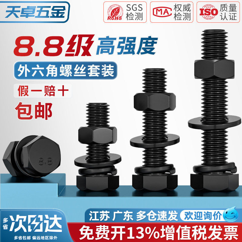 📚 8.8级黑色外六角螺丝螺母高强度组合平垫弹垫套装M4M5M6M8M10M12