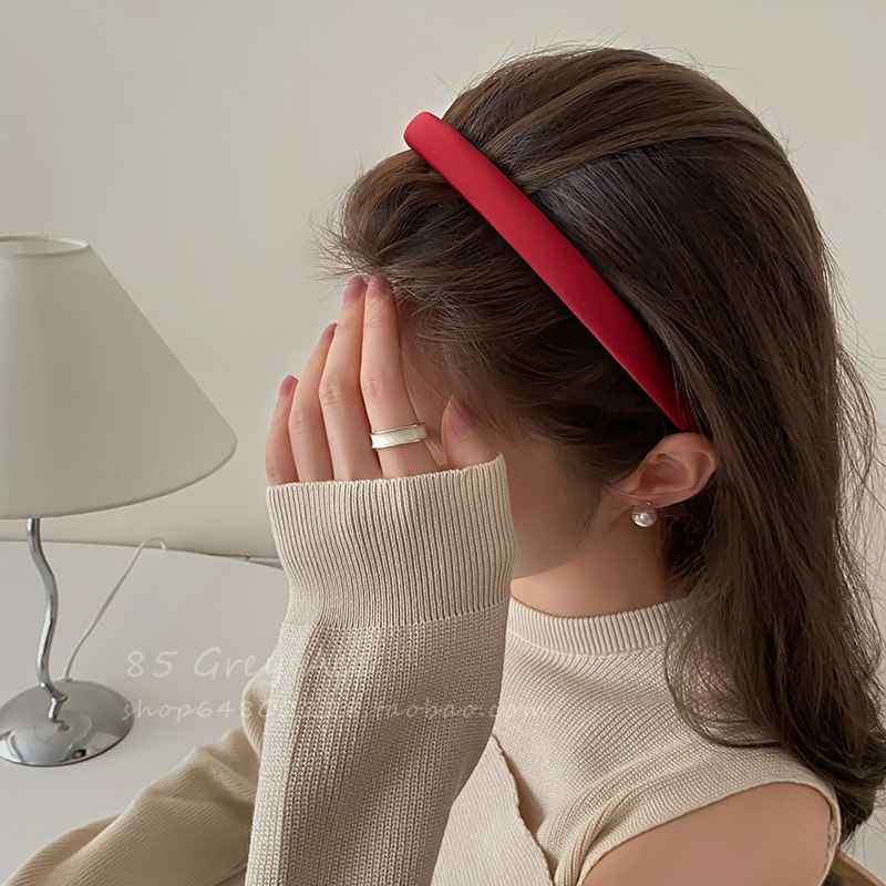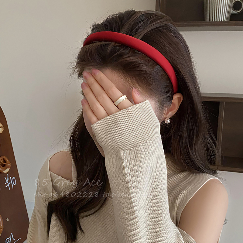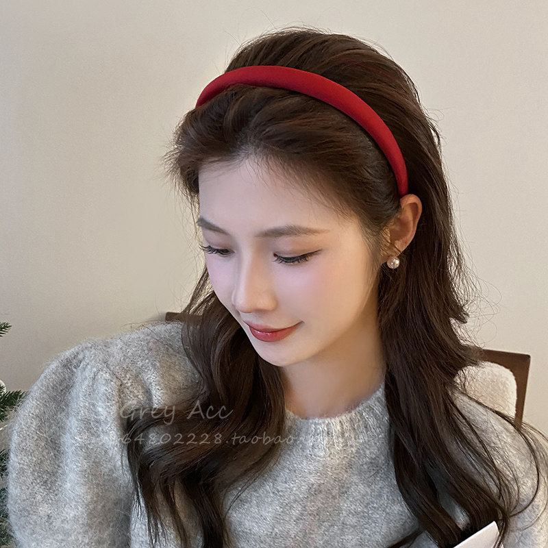 📚 高级感复古红色细款海绵发箍女秋冬高颅顶压发洗脸头箍气质发饰品
