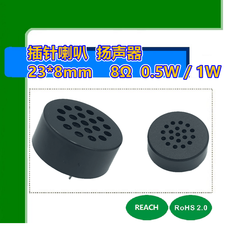 📚 2308喇叭蜂鸣器 尺寸23*8mm 8R0.5W 脚距10mm 无源扬声器指纹
