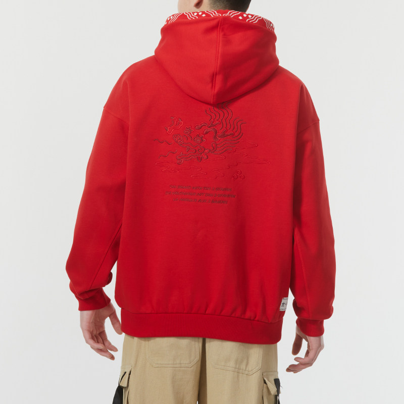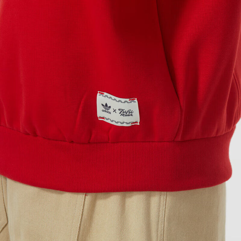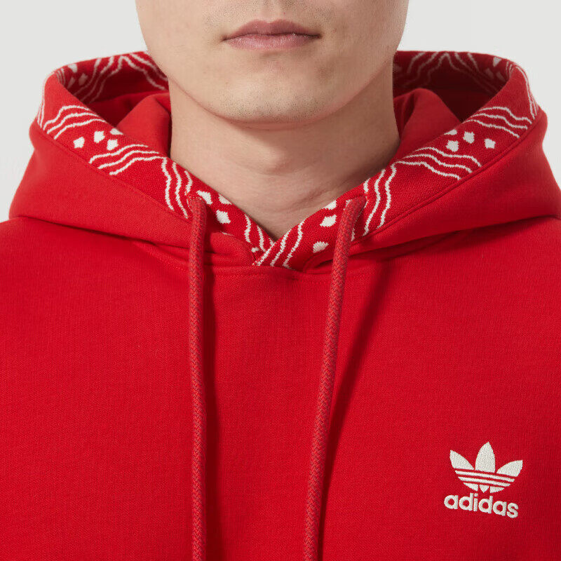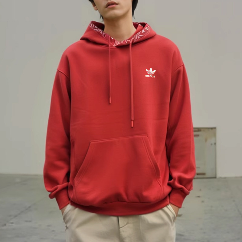 📚 阿迪达斯三叶草红色卫衣男冬季新款加厚连帽衫宽松大码篮球运动服