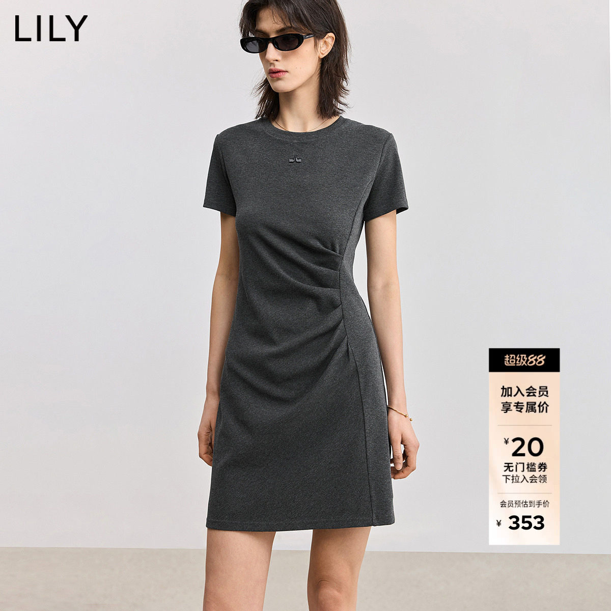18¥ MF937 QnvJ5TBkFTN¥ https://m.tb.cn/h.ip4fvN9 LILY2025夏新款格雷系极简风不对称褶皱收腰休闲短袖T恤连衣裙女 --------------------- 【原售价】699元 【现售价】571元。