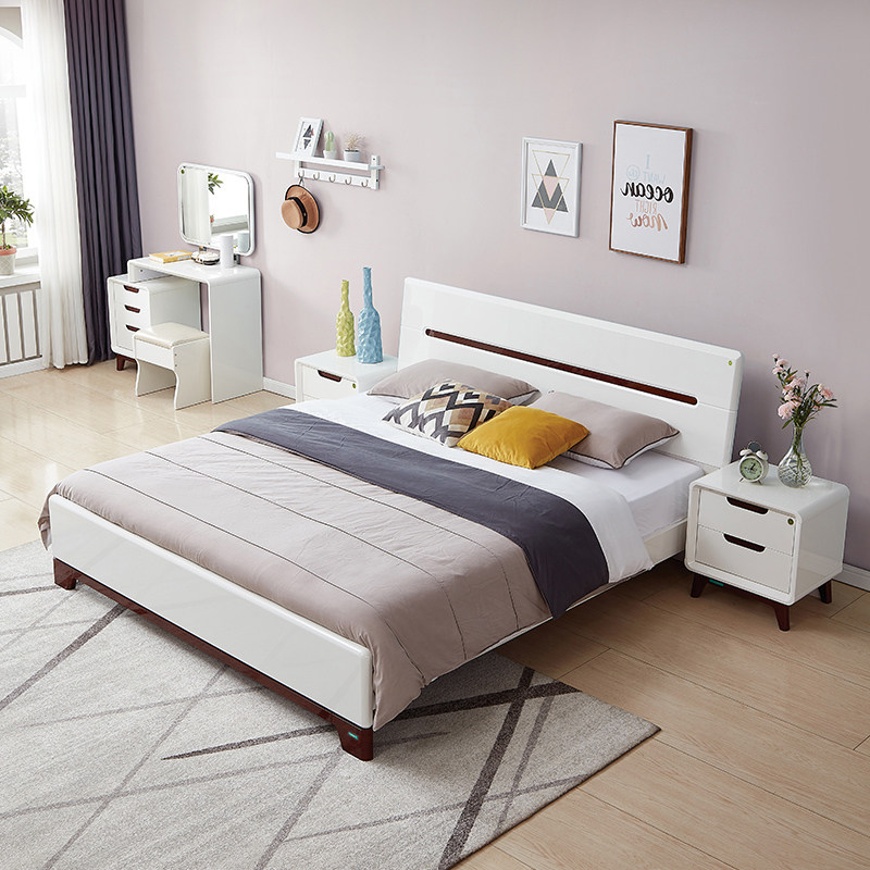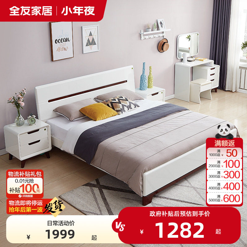 📚 全友家居现代简约板式床1.8米主卧室双人大床北欧家具1米5高脚床