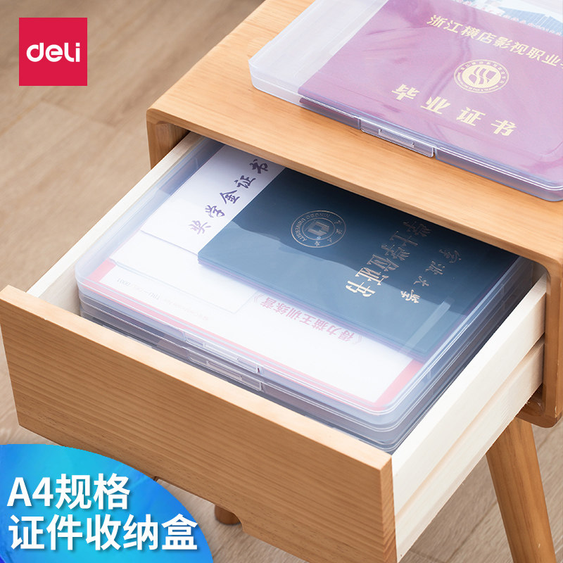 📚 得力文件盒5701重要家庭家用证件收纳档案盒文件资料盒桌面办公室塑料ipad保护盒透明78930整理盒试卷收纳盒
