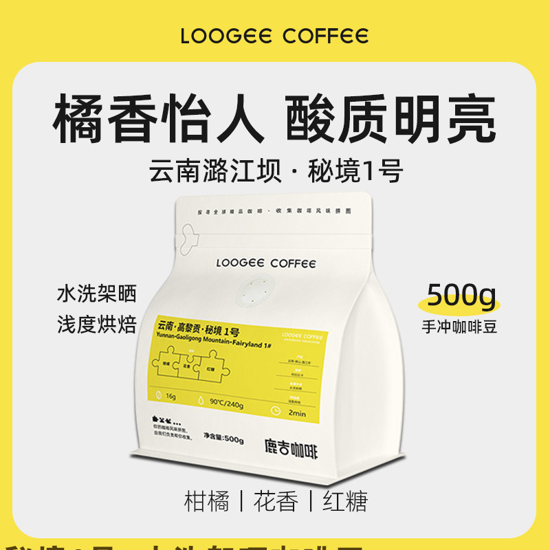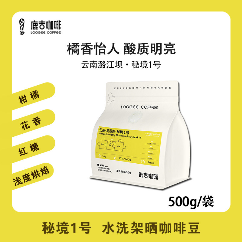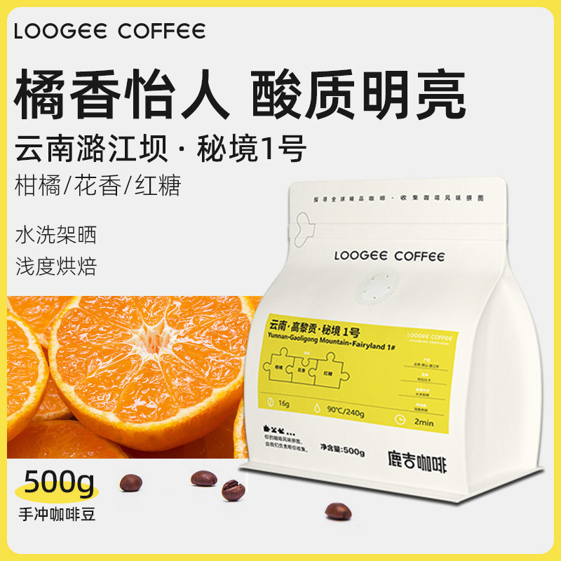 📚 鹿吉 云南高黎贡秘境1号精品咖啡豆中浅烘焙蓝山风味可现磨粉500g