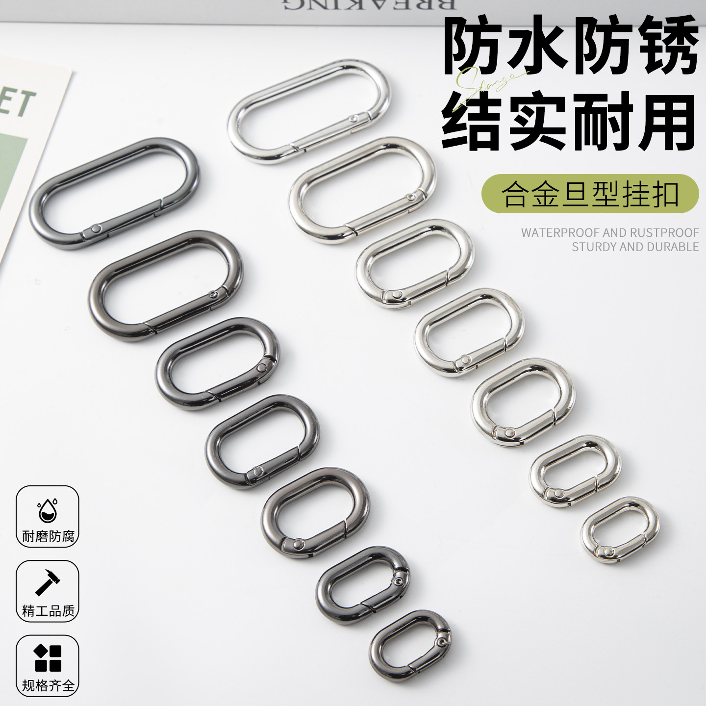 📚 旦形弹簧扣金属环挂钩扣圆环椭圆拼豆钥匙圈开口环包挂扣五金配件