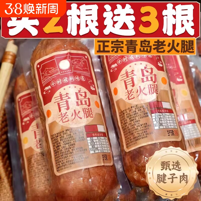 📚 青岛老火腿猪腱子肉烤香肠果木熏烤老式三明治纯即食解馋礼盒早餐