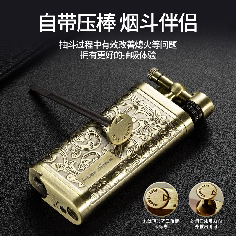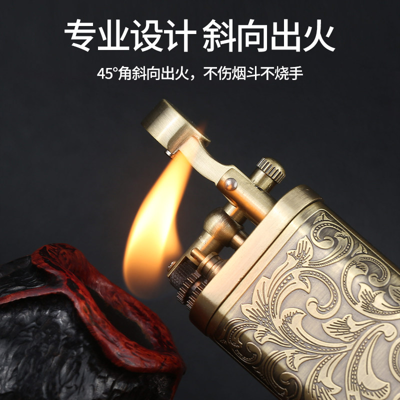 📚 烟斗打火机烟斗专用打火机斜火防风耐用可充气礼品带压棒抽斗火机