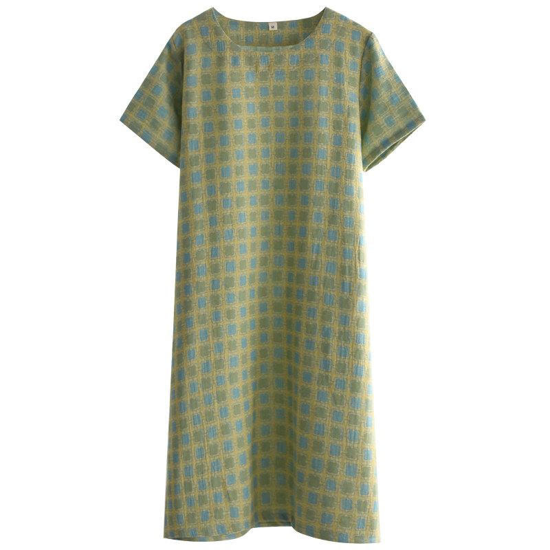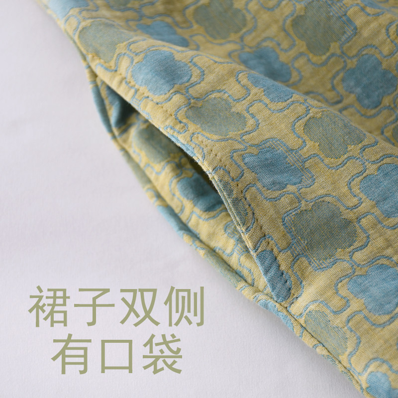 📚 格子复古风睡裙女夏季提花纯棉纱布薄款短袖裙子家居服睡衣可外穿