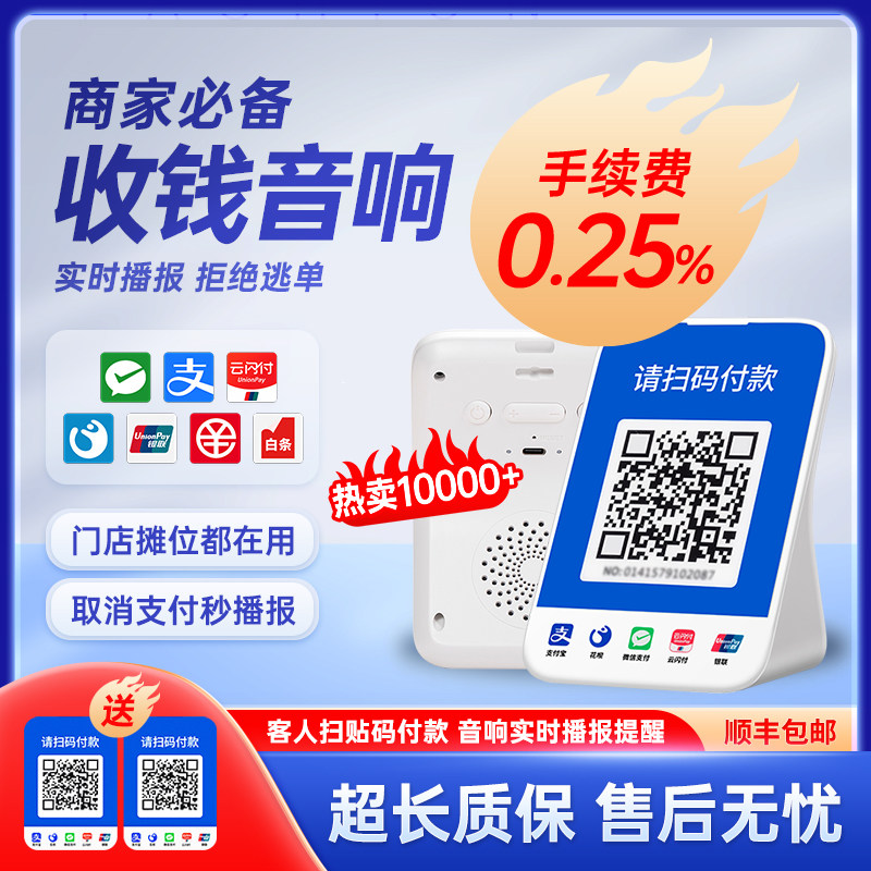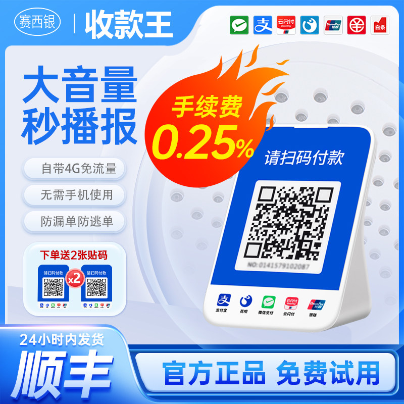 📚 二合一收款码商家语音播报器微信收款音响支付宝二维码收钱提示音响箱无需手机不用蓝牙4g移动收钱机器