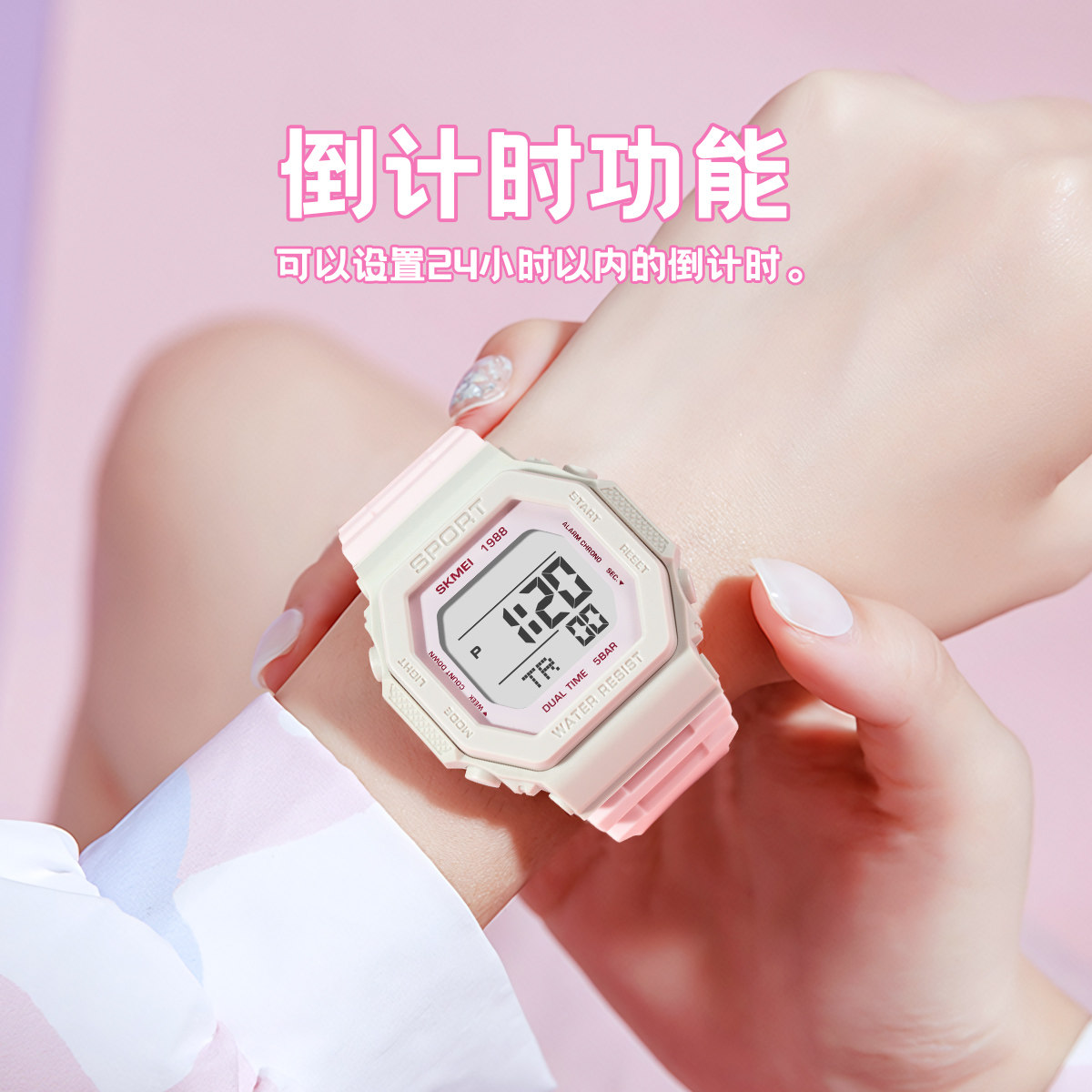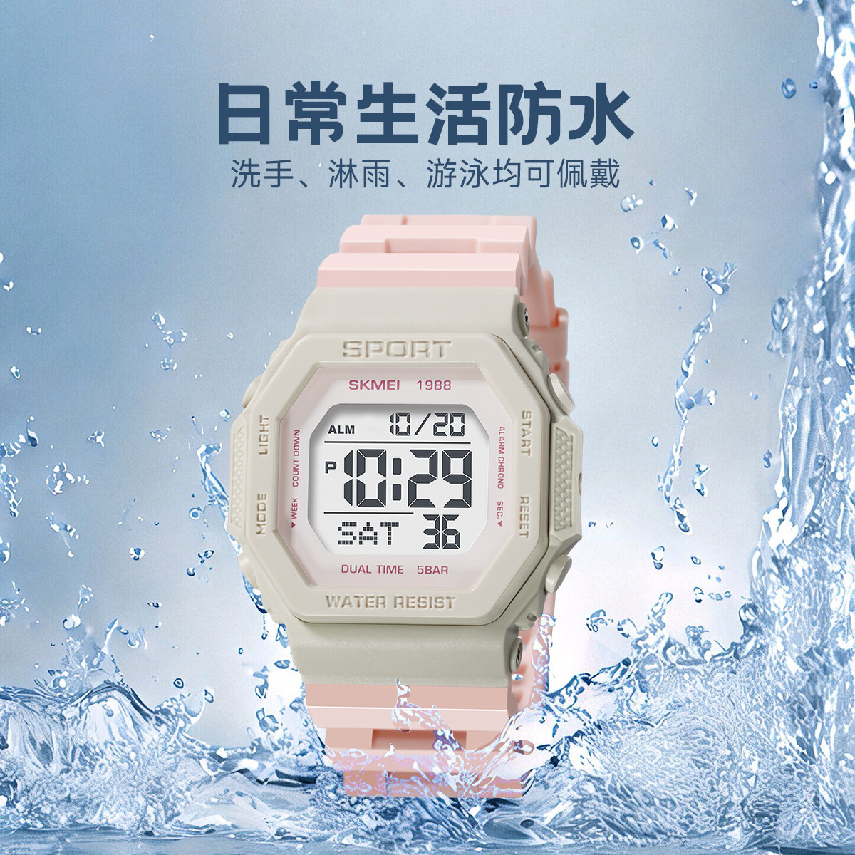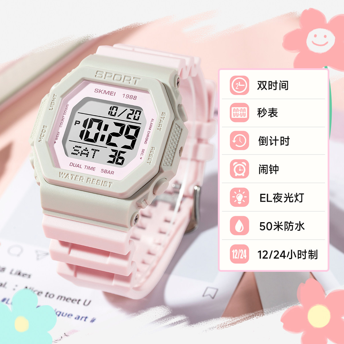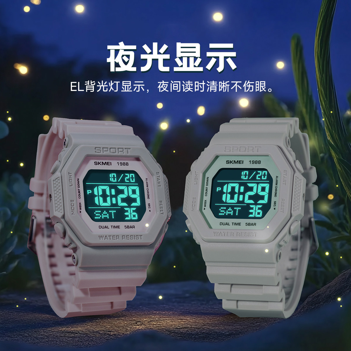 📚 Skmei/时刻美拼色小方块黑金手表防水男款学生星期夜光运动电子表