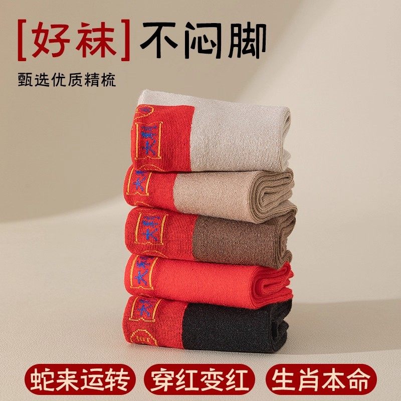 📚 七星红袜子本命年男女本命年喜庆福字秋冬结婚情侣中筒大红袜