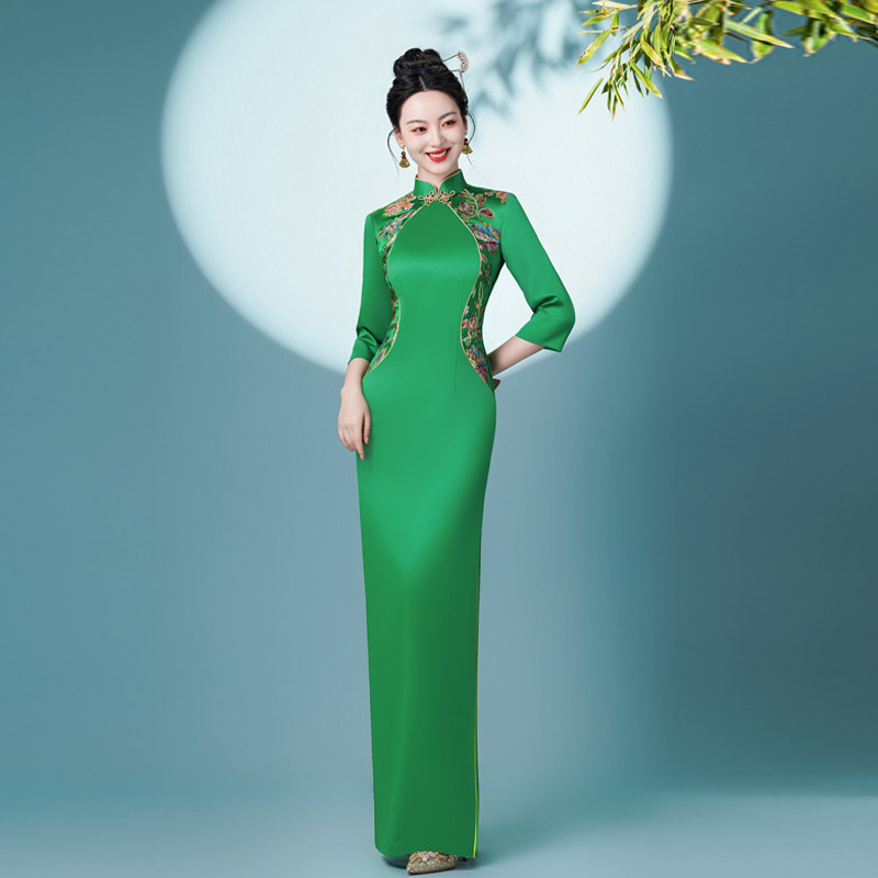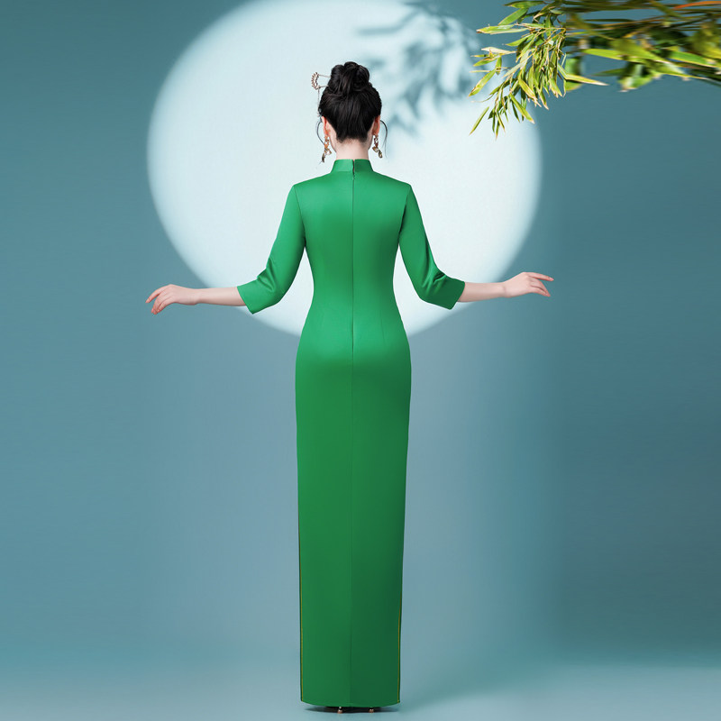 🎉总的来说,这款高端走秀旗袍2025年新款改良中国风绿色修身宴会模特团队表演服装,真的是一款不可多得的好物。如果你也喜欢中国风的设计,想要在宴会上展现自己的优雅气质,那么这款服装绝对是你的不二之选。